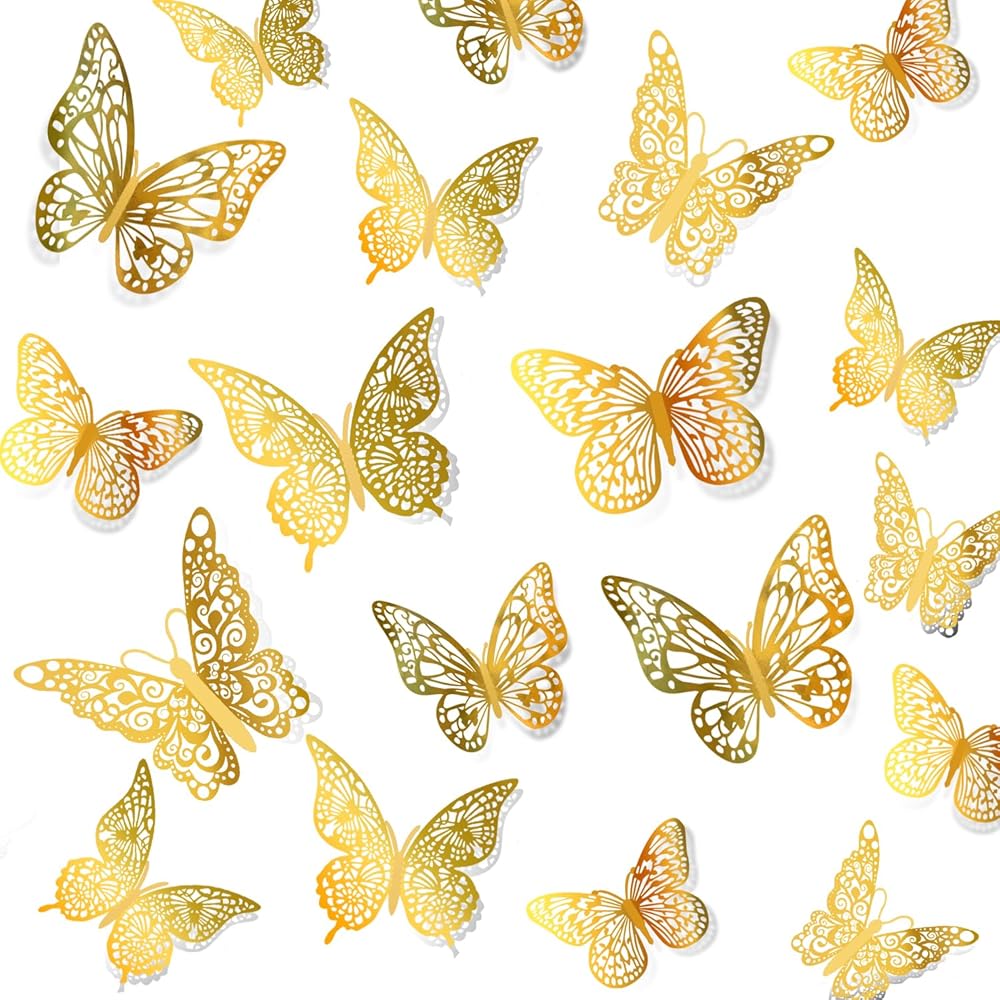تصميم منحوت ثلاثي الأبعاد: هذه الفراشات مصنوعة من ورق عاكس، والتصميم المجوف ثلاثي الأبعاد يجعل الفراشات تبدو فريدة ولافتة للنظر. يمكنك طي أجنحة الفراشة وإنشاء تأثير ثلاثي الأبعاد وطي ملصق الفراشة بالشكل الذي تريده.