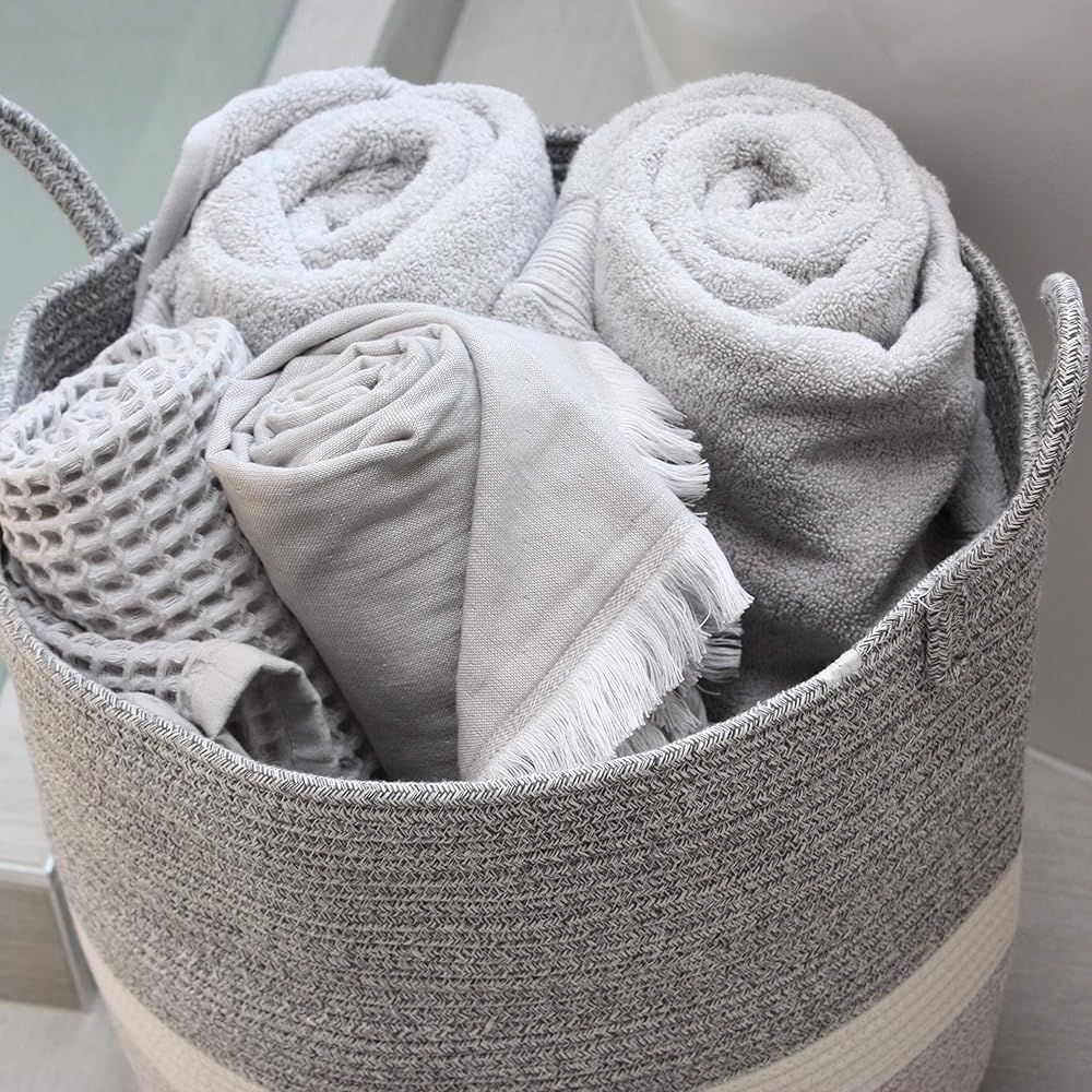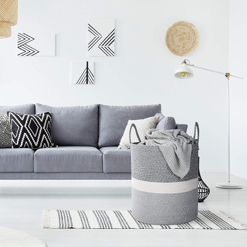 • سلة تخزين العرض: لا حاجة لإخفاء بطانيات غرفة المعيشة الخاصة بك، استخدم سلتنا الأنيقة للبطانيات والأغطية والوسائد في غرفة المعيشة الخاصة بك. تمتزج ظلال الألوان الطبيعية والرمادية بشكل أنيق لتظهر بشكل جيد في أي ديكور منزلي.