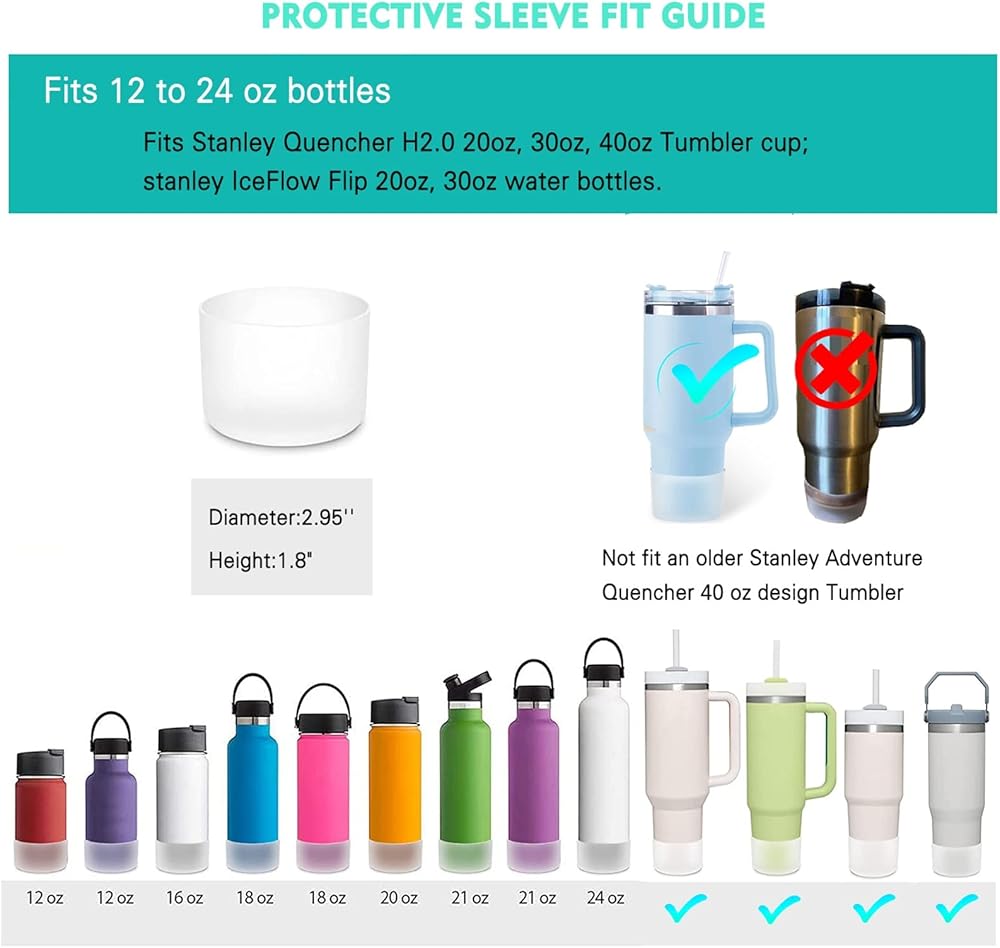 • 【حماية أفضل】يمكن للغطاء الواقي من السيليكون لستانلي كوينشر أن يحمي كوبك من الاصطدامات والكشوط والخدوش. امنح زجاجة المياه الخاصة بك عمرًا أطول، ولن تصدر ضوضاء عند وضعها على الطاولة، ولا داعي للحرج من قعقعة الزجاجة على الطاولات أو الطاولات.