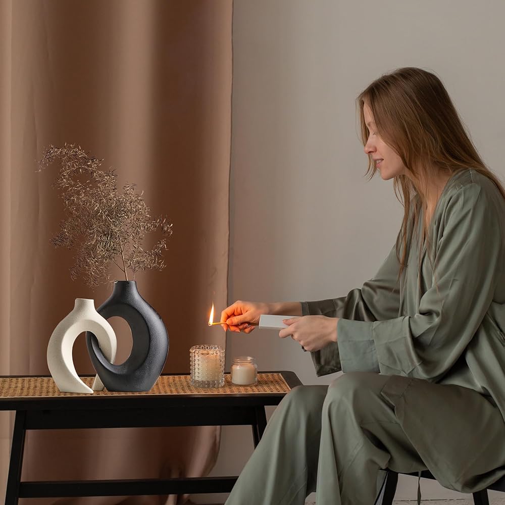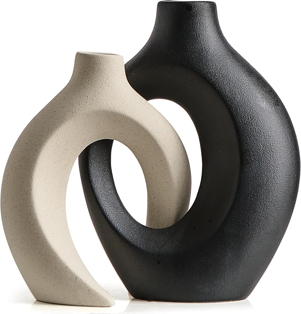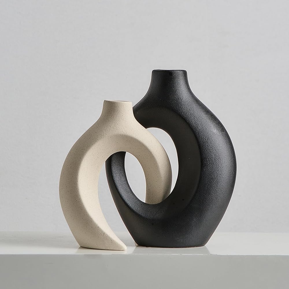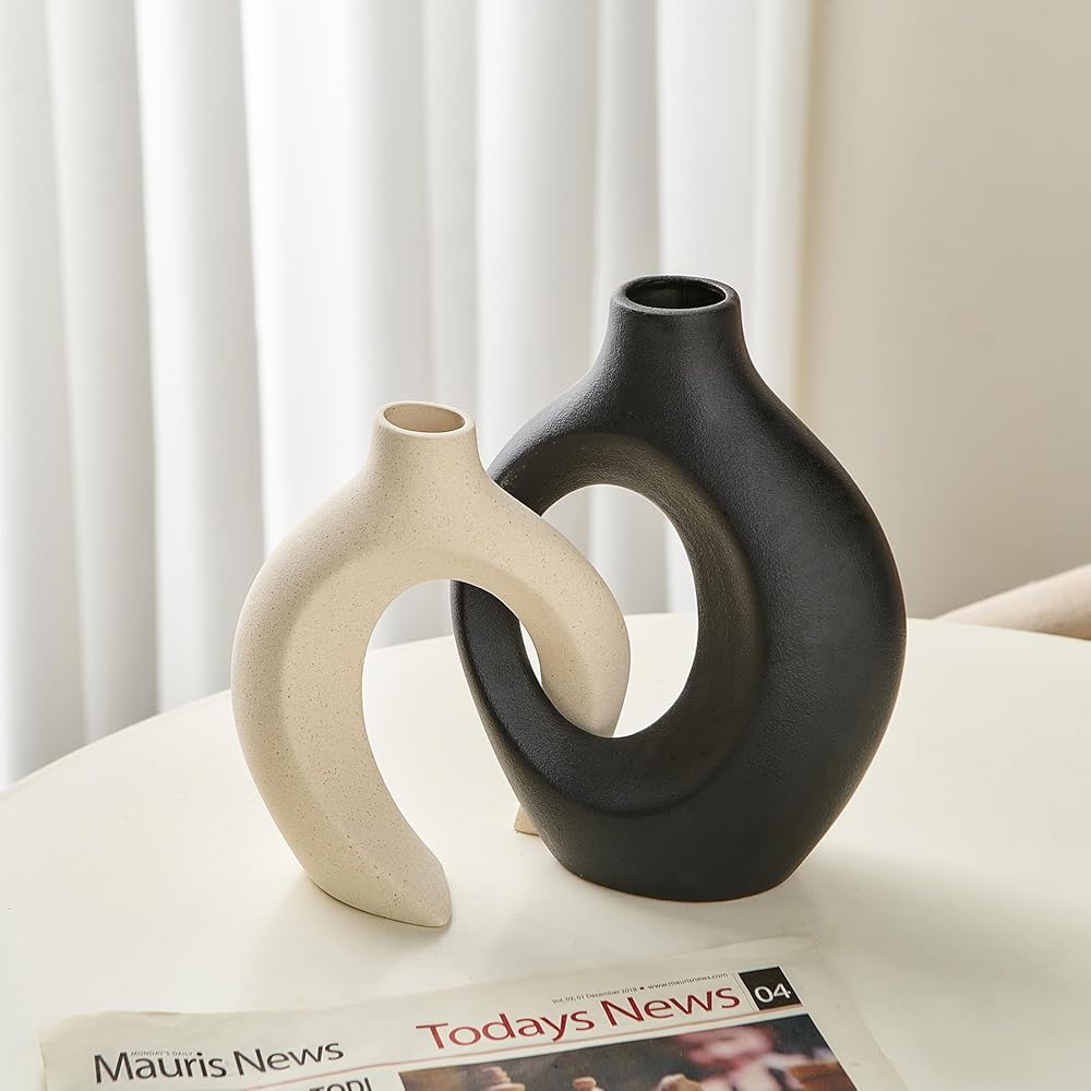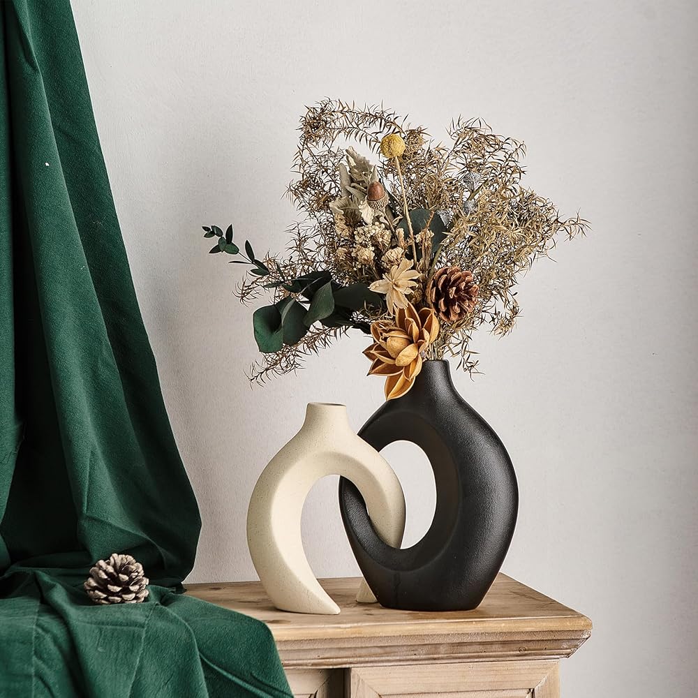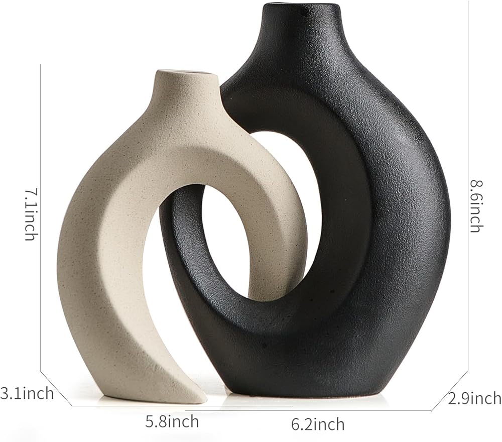 • 🌷【مزهريات سيراميك أنيقة】تتضمن مجموعة مزهرية الدونات مزهريتين جميلتين من السيراميك الأبيض مثاليتين لعرض الزهور الصغيرة. يبلغ مقاس المزهرية الأطول 8.4 بوصة × 6.4 بوصة (الارتفاع × العرض)، بينما يبلغ مقاس المزهرية الأقصر 6.9 بوصة × 5.4 بوصة (الارتفاع × العرض)، مما يجعلها مثالية لأي مساحة.