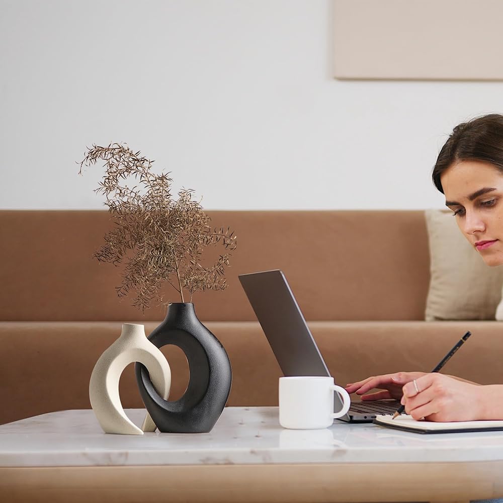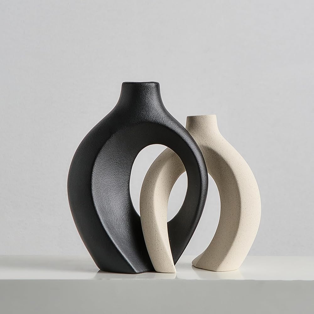 • 🌷【تصميم حديث】تتميز هذه المزهريات المجردة والبسيطة بتصميم ثنائي رومانسي باللون الأبيض الفاتح، يحتضن ويحتضن الرومانسي الذي ينضح بالرقي والنضج. إنها مثالية لتعزيز جمالية غرفة معيشتك أو ديكور طاولة القهوة أو المطبخ أو غرفة الطعام أو أي غرفة أخرى في منزلك!