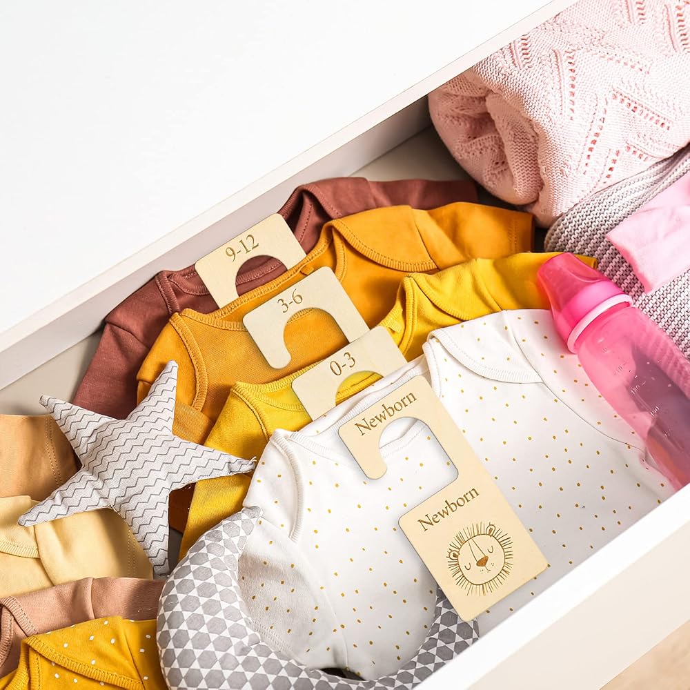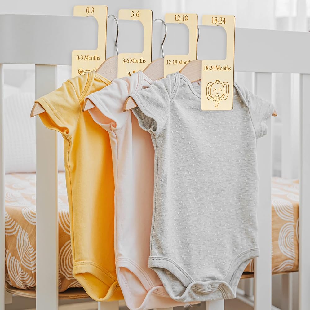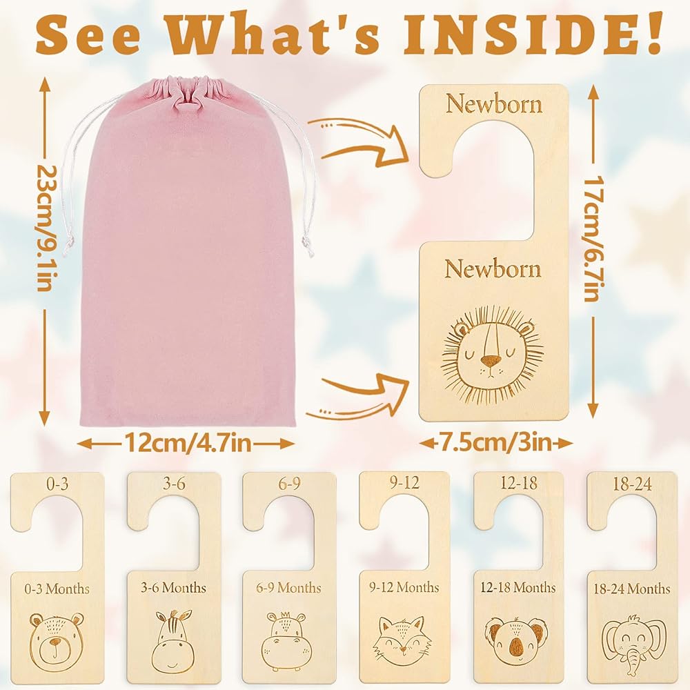 المقاس المناسب - يبلغ مقاس مقسم ملابس الأطفال 17 × 7.5 × 0.4 سم / 6.7 × 3 × 0.2 انش. مقاس الحقيبة المخملية البينك 12×23 سم/ 4.7×9.1 انش. تناسب معظم الخزانات ويمكن تعليقها على جميع قضبان الخزانة القياسية لمساعدة الأمهات الجدد على تنظيم ملابس الأطفال بأناقة حسب العمر والحفاظ على الملابس منظمة.