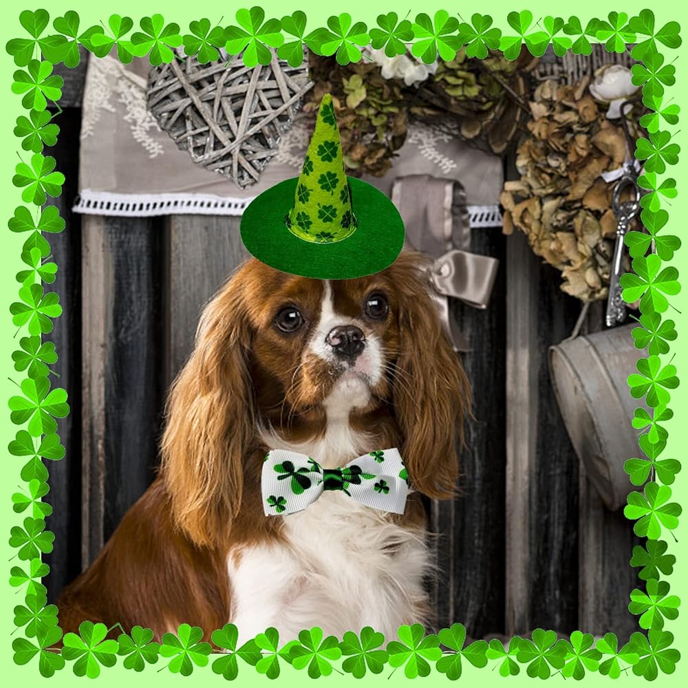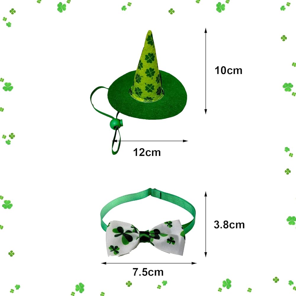 St.Patrick's Day Dog Costume Sets,Green Shamrock Pet Hat and Patrick's Day Dog Bow Tie,Adjustable Pet Costume,Cute Cat Neck Decorations,Holiday Party Pet Hat for Pet Supply