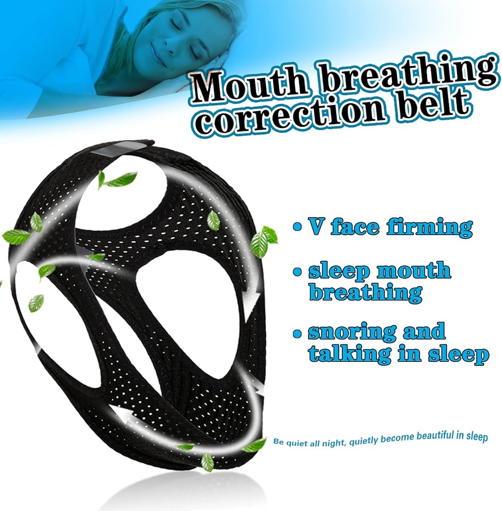 "This useful product helps you to securely hold the chin and keep your mouth closed to get the right habit of breathing with your nose, rapidly reduce snoring,Help you develop proper sleep habits and improve the quality of your sleep no more waking up with a dry mouth, let your loved and you enjoy the quiet high quality of sleep and keep a refreshing spirit in daily lifeMaterial:clothSize:universalPackage include:2PicesColor:Black"
