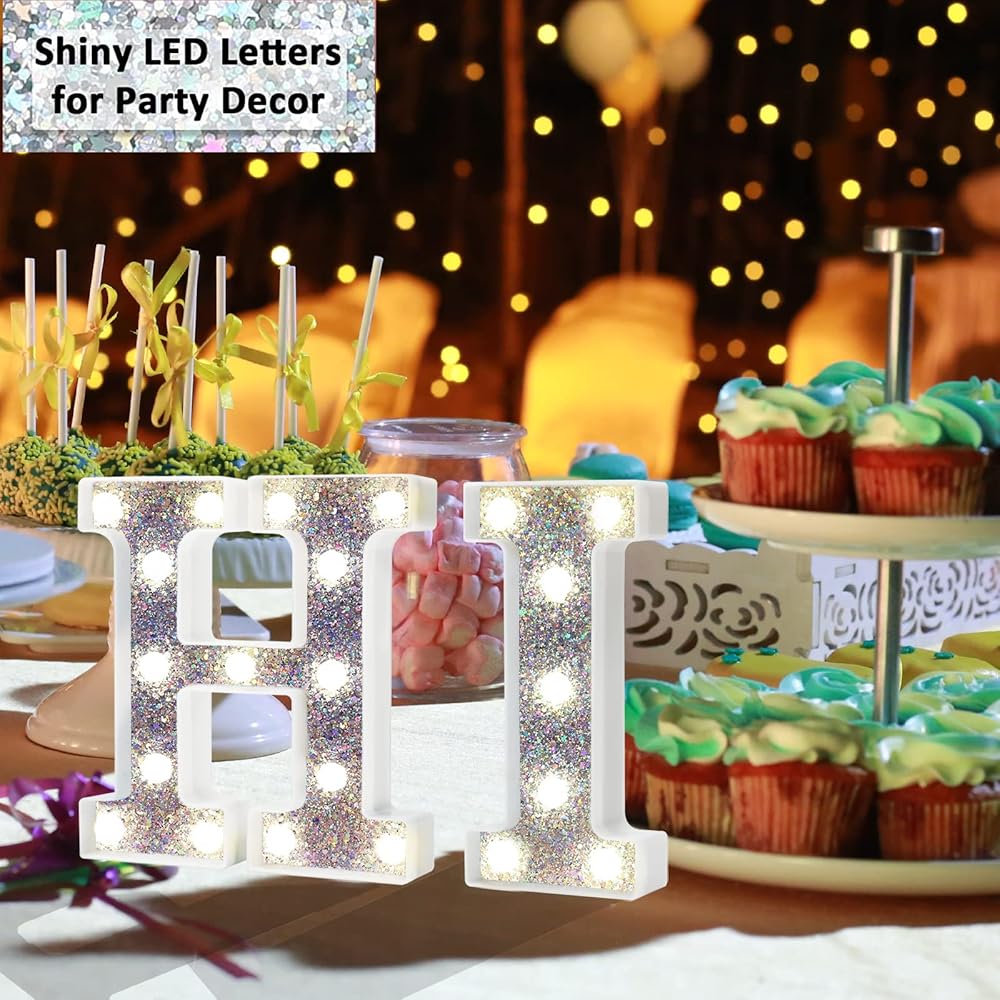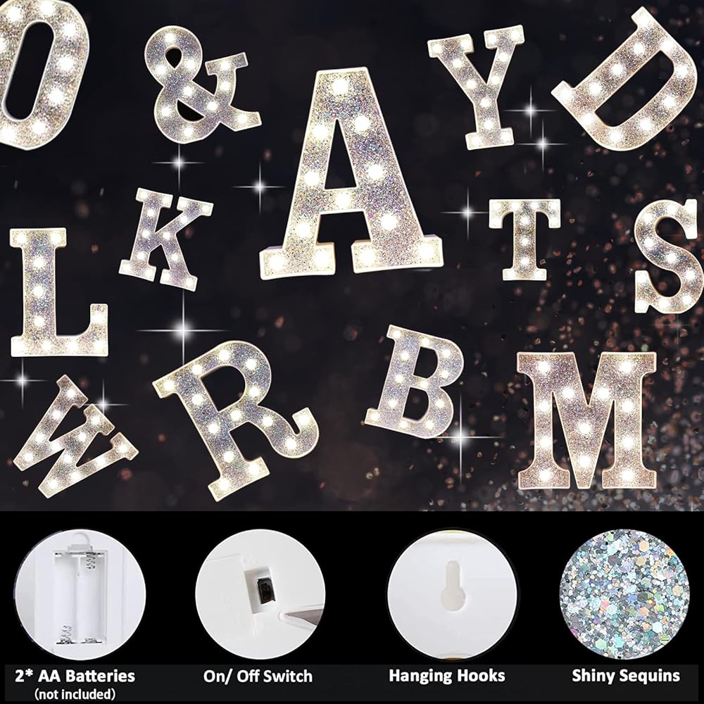 حروف مضيئة باللون الفضي: حروف LED مغطاة بترتر دائري لامع، على شكل نجمة، على شكل قلب، وترتر سداسي لامع، هذا تصميم فريد يميزه عن الحروف الأخرى. تشع أضواء الحروف الفضية وهجًا قزحيًا مبهرًا ورائعًا بغض النظر عن تشغيلها أو إيقافها. استخدم أضواء الحروف الأبجدية اللامعة لتزيين منزلك أو حفل زفاف عيد الميلاد. بل هو أيضا هدية عظيمة لها.