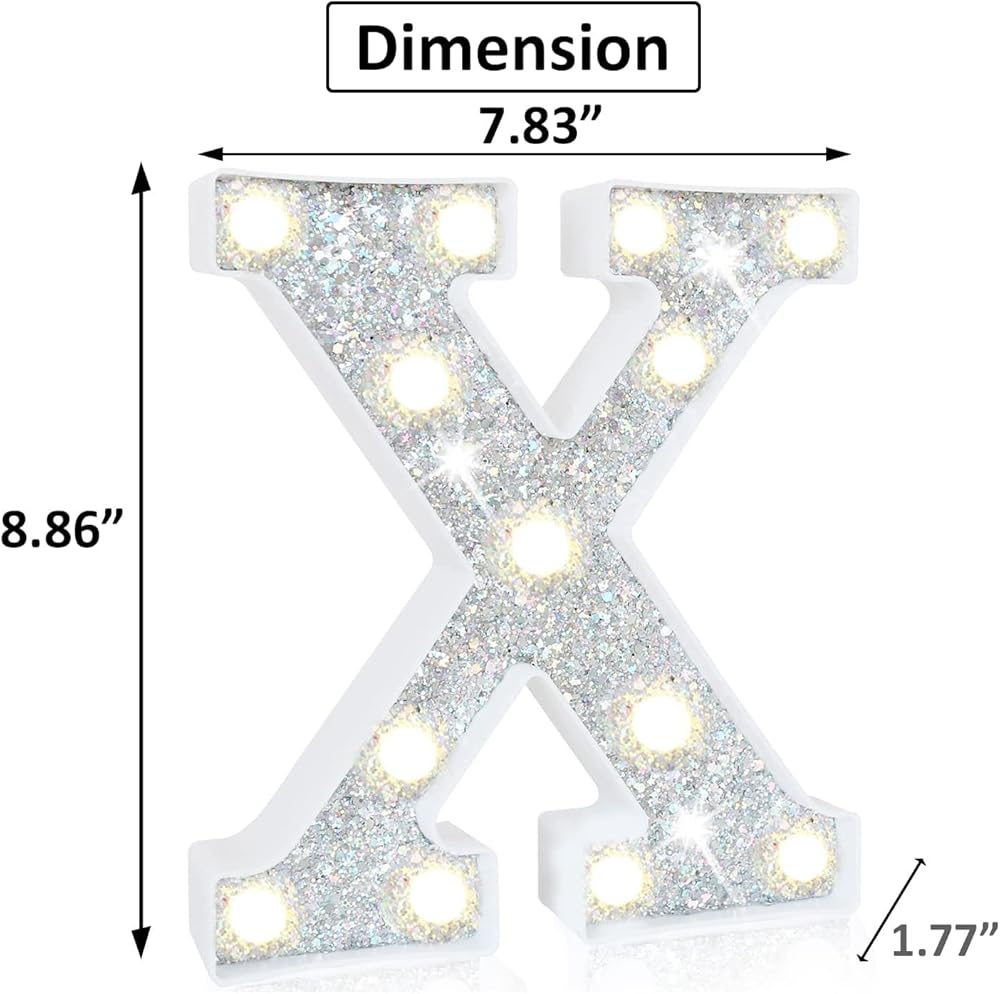 أبعاد الحروف الفضية: 8.86 بوصة × 7.87 بوصة × 1.77 بوصة. علامات لامعة لتزيين الطاولة والجدار. كل حرف مصمم بقاعدة مسطحة، والتي يمكن وضعها على الطاولة بشكل ثابت أثناء الحدث أو الاحتفال.