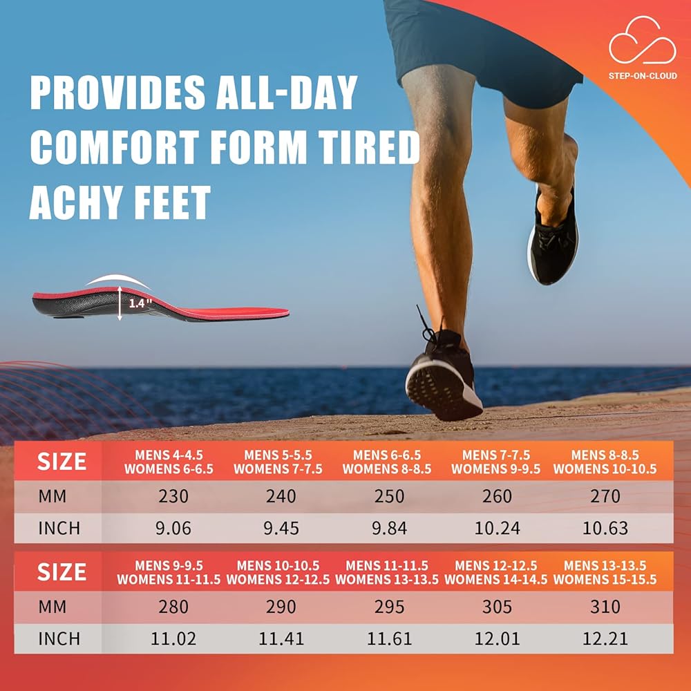 • 【تخفيف آلام القدم】احصل على راحة من آلام القدم والإجهاد باستخدام النعال الداخلية الداعمة من PCS، المصممة بأقصى قدر من التوسيد لراحة طويلة الأمد وعلاج فعال لمشاكل القدم الشائعة مثل التهاب اللفافة الأخمصية والتهاب الأوتار.