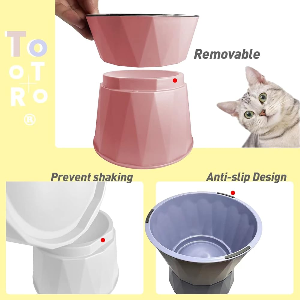حامل حماية للرقبة بتصميم وعاء مرتفع للحيوانات الأليفة من توتورو للمياه والطعام، وعاء صغير للكلاب والقطط من الفولاذ المقاوم للصدأ مع قاعدة مضادة للانزلاق