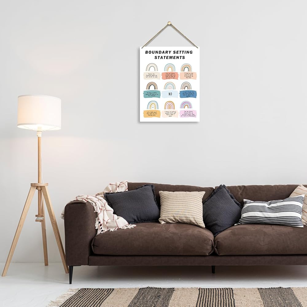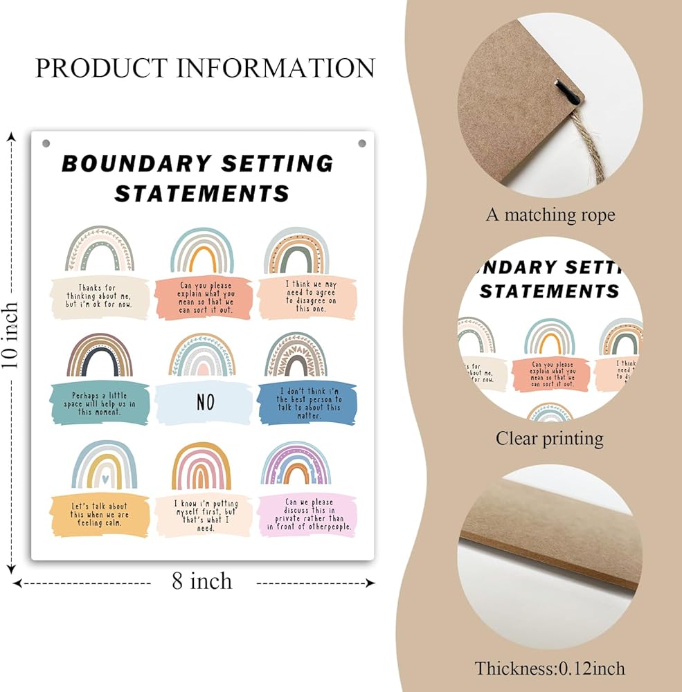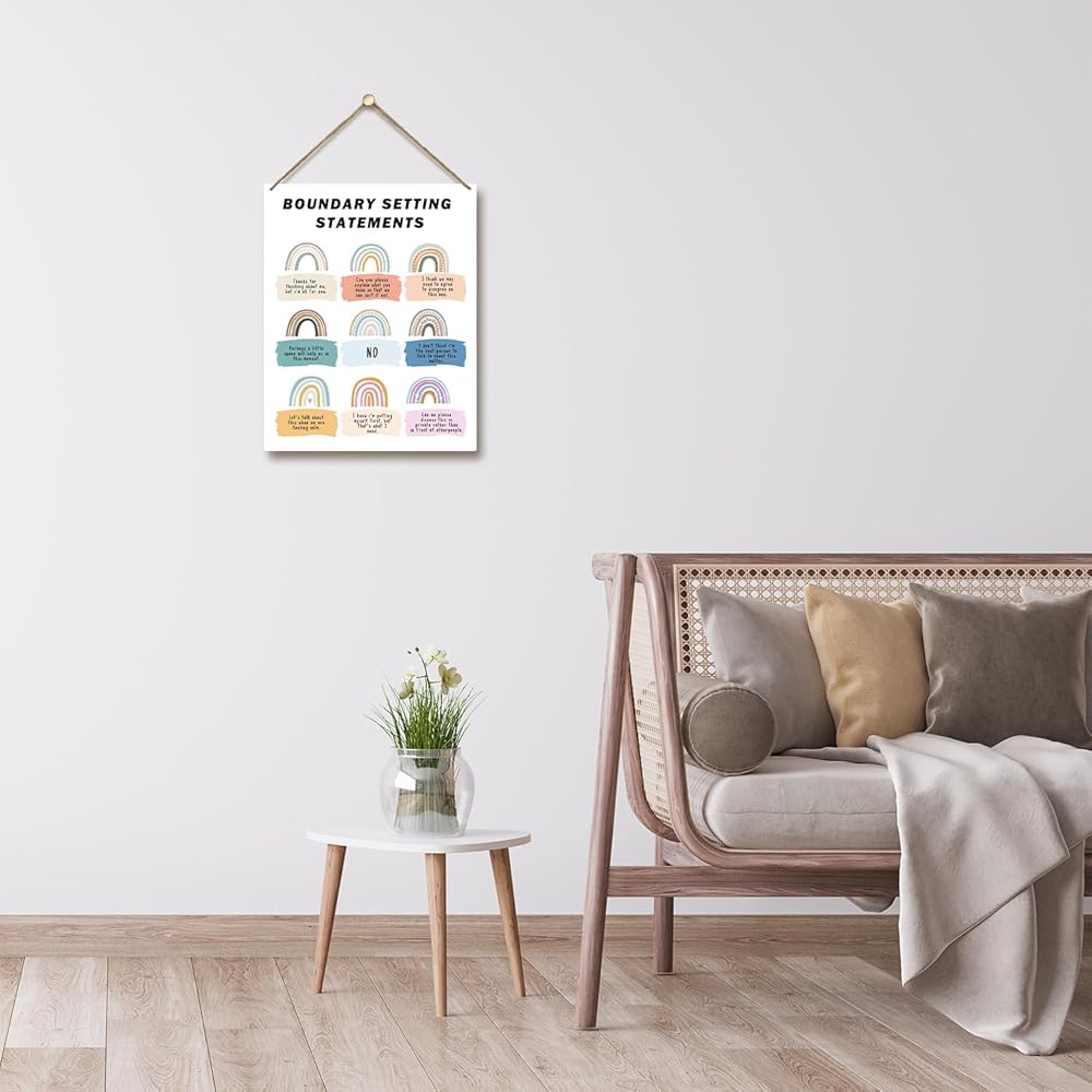 لوحة خشبية للتعليق على الحائط مقاس 8 × 10 بوصة، بيانات تحديد الحدود، علامة خشبية بألوان محايدة من بوهو هدية فنية جدارية مزخرفة للمستشار المعالج والمكتب وغرفة المعيشة - 10