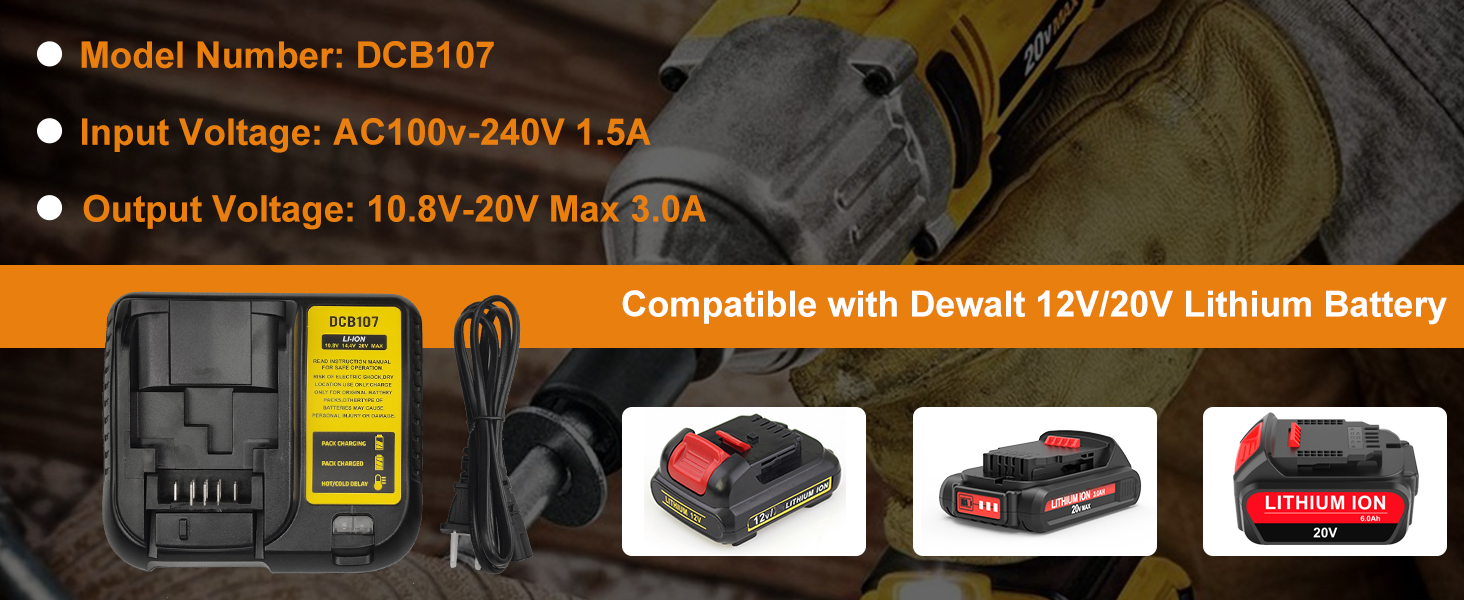 استبدال لشاحن ديوالت DCB112 DCB115 DCB101 DCB102 DCB105 DCB107؛ متوافق مع بطارية ديوالت 12 فولت/20 فولت