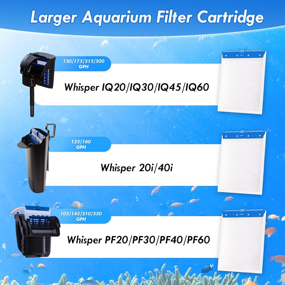 Compatible with Whisper Bio-Bag External Filter PF20, 30, 40, 60/ Whisper External IQ20, 30, 45, 60/Whisper 20i & 40i Internal Filter and Fauna ReptoFilter 50 gallons (125 GPH).