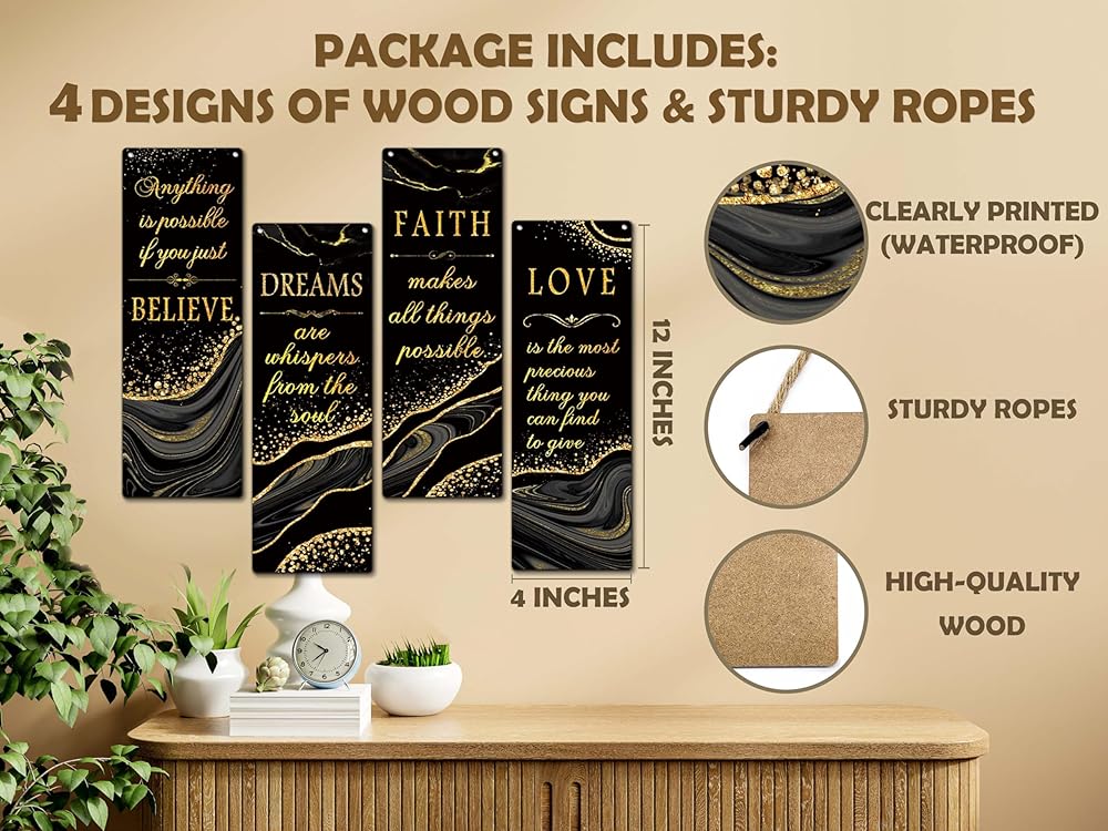 Packing Includes - 4 wooden sign with 4 hemp rope, the wooden sign measures 4 x 12 inches.