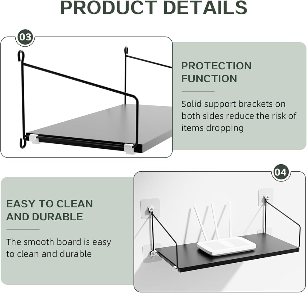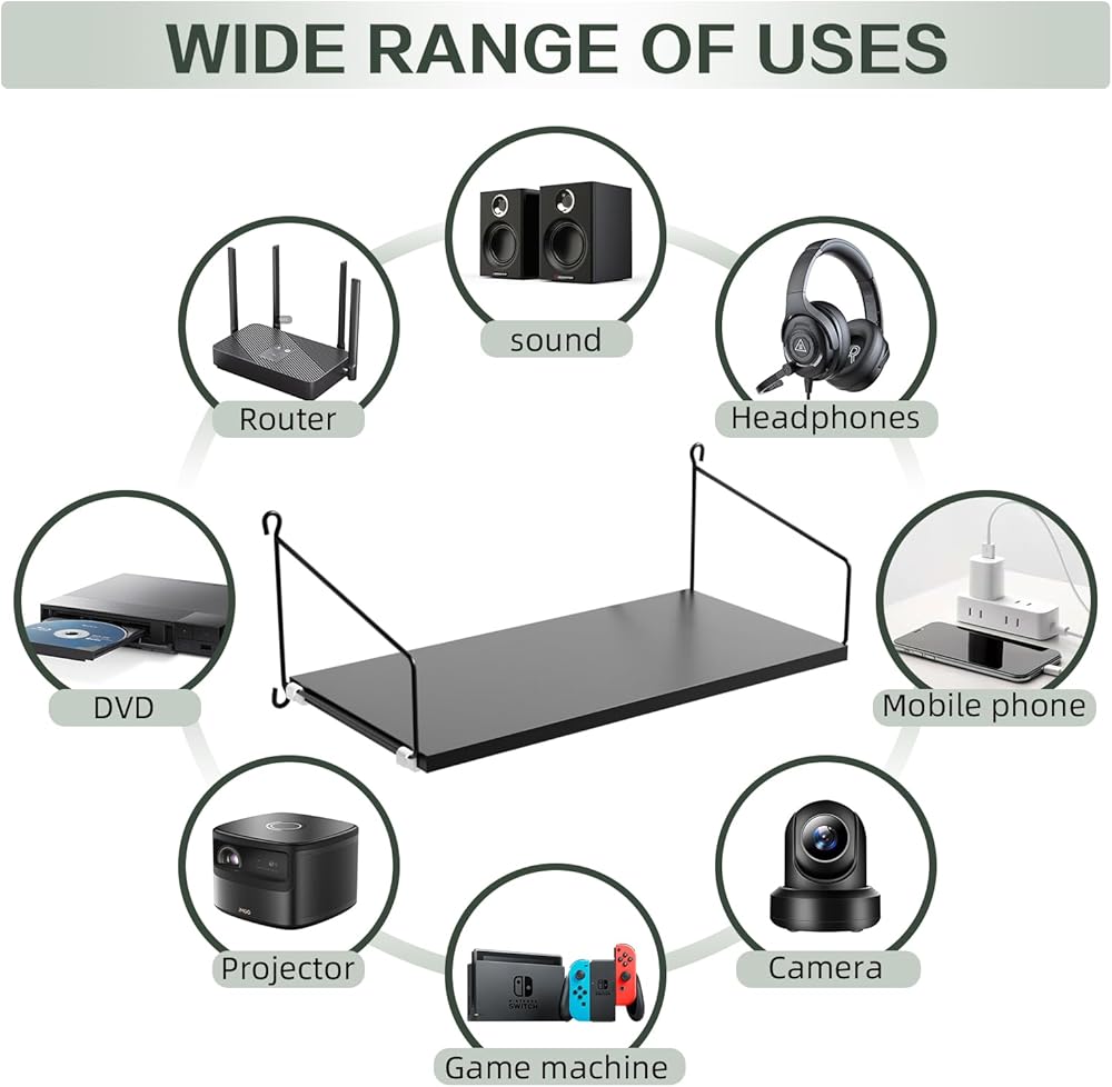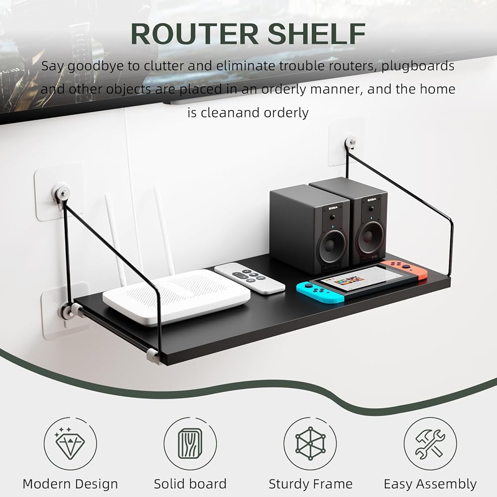【جودة ممتازة】مع لوح عريض 7.87 انش وسمك 0.6 انش، ودعامة سلكية ستيل 0.2 انش، سيوفر لك رف الحائط للتلفزيون قدرة تحمل عالية، بحد أقصى 30 باوند 4 ثانية عند تركيبه جيدًا. 💗 قد تكون الأمور أفضل مع رف الراوتر الخاص بنا. سيتم وضع آرائك دائمًا في الأولوية.