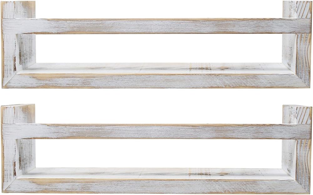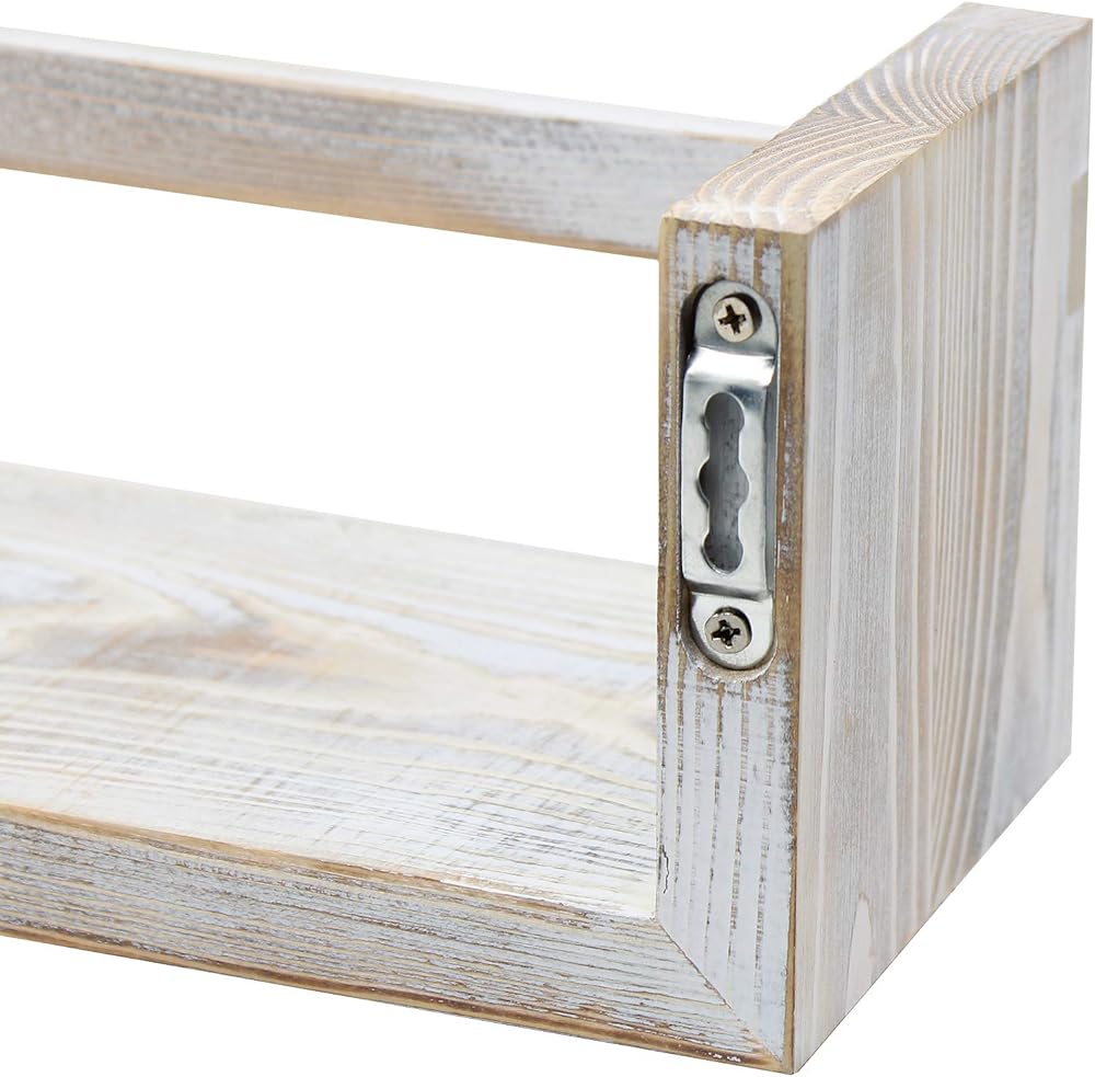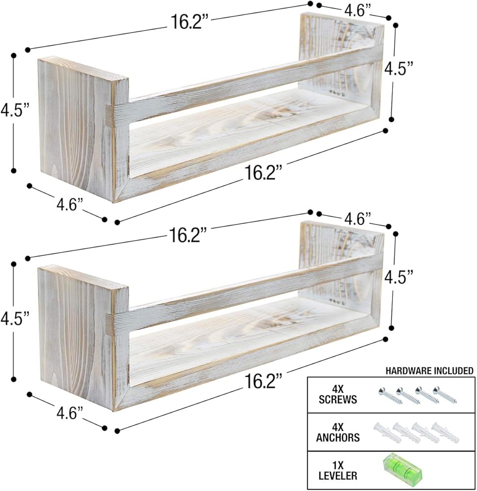 • تصميم قوي - قوي بما يكفي لحمل الأشياء الصغيرة المفضلة لديك - رف على الطراز الريفي المتعثر (مع شريط متقاطع لمزيد من الأمان) - مصنوع من الخشب الصلب بنسبة 100% - لون محايد - يأتي مجمعًا وجاهزًا للتعليق - مجموعة من 2 - القياسات التقريبية يبلغ مقاسها تقريبًا 16.2 "طول × 4.6 بوصة عرض × 4.5 بوصة ارتفاع