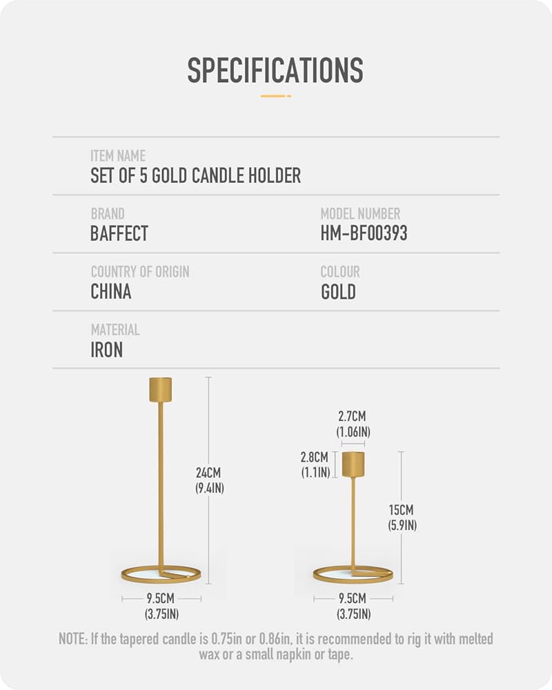 2. حجم الشمعة القابل للتطبيق: قطر حامل الشموع 1 انش حتى تتمكن من وضع الشمعة المفضلة لديك التي يبلغ قطرها أقل من 1 انش لإضفاء جو لطيف وأنيق.
