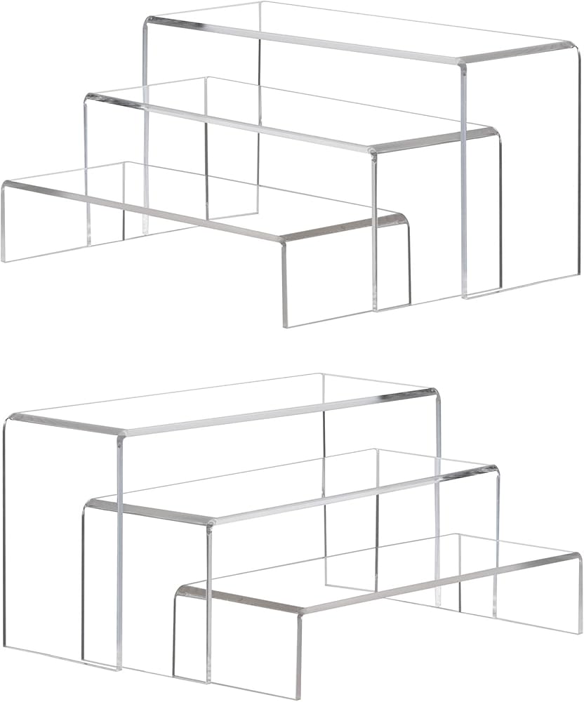 مجموعتان من رافعات عرض الاكريليك الشفافة، 3 احجام رافعات المجوهرات اليدوية حامل البيع بالتجزئة حامل الكب كيك والحلويات