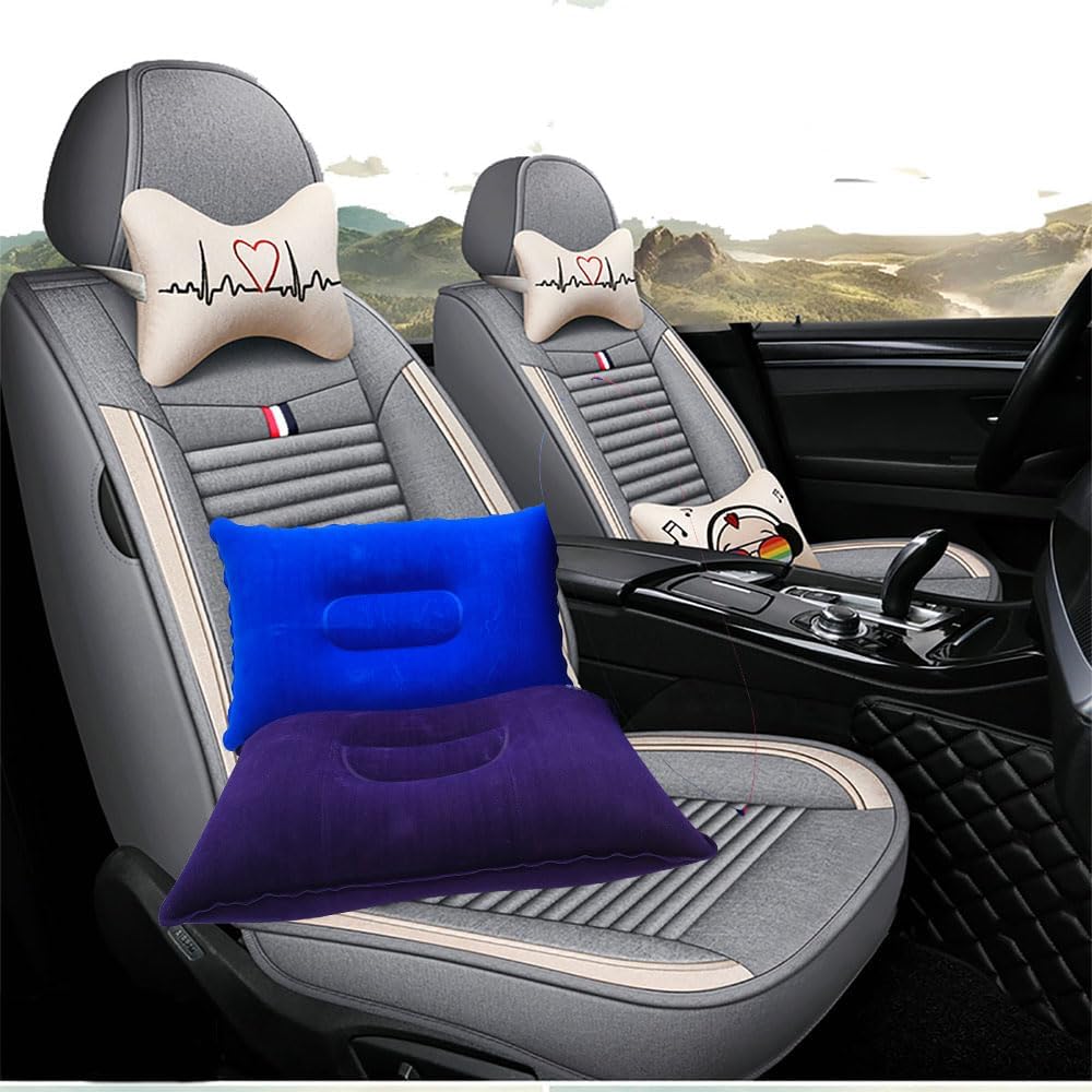 وسادة سفر للتخييم صغيرة مربعة من القماش وسادة هوائية صغيرة الحجم ومريحة، وسادة نفخ مريحة لدعم الرقبة والفقرات القطنية أثناء التخييم، المشي لمسافات طويلة، حقيبة ظهر - 3 قطع (رمادي وأزرق وأرجواني)