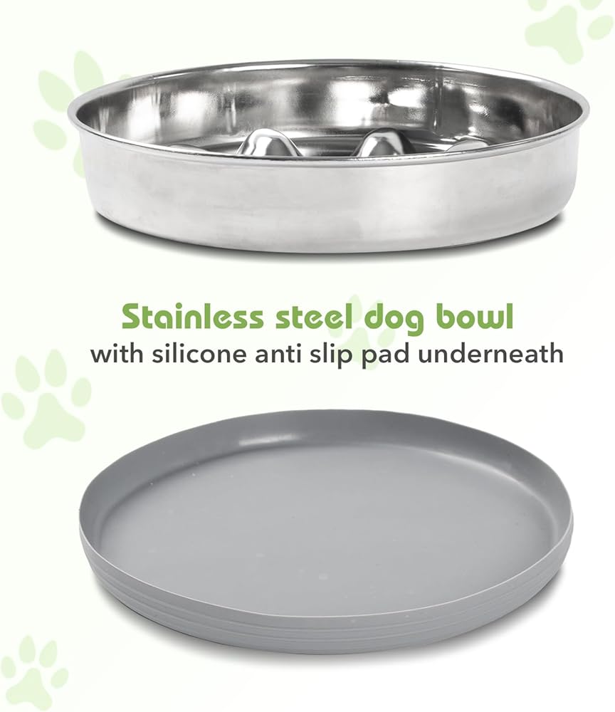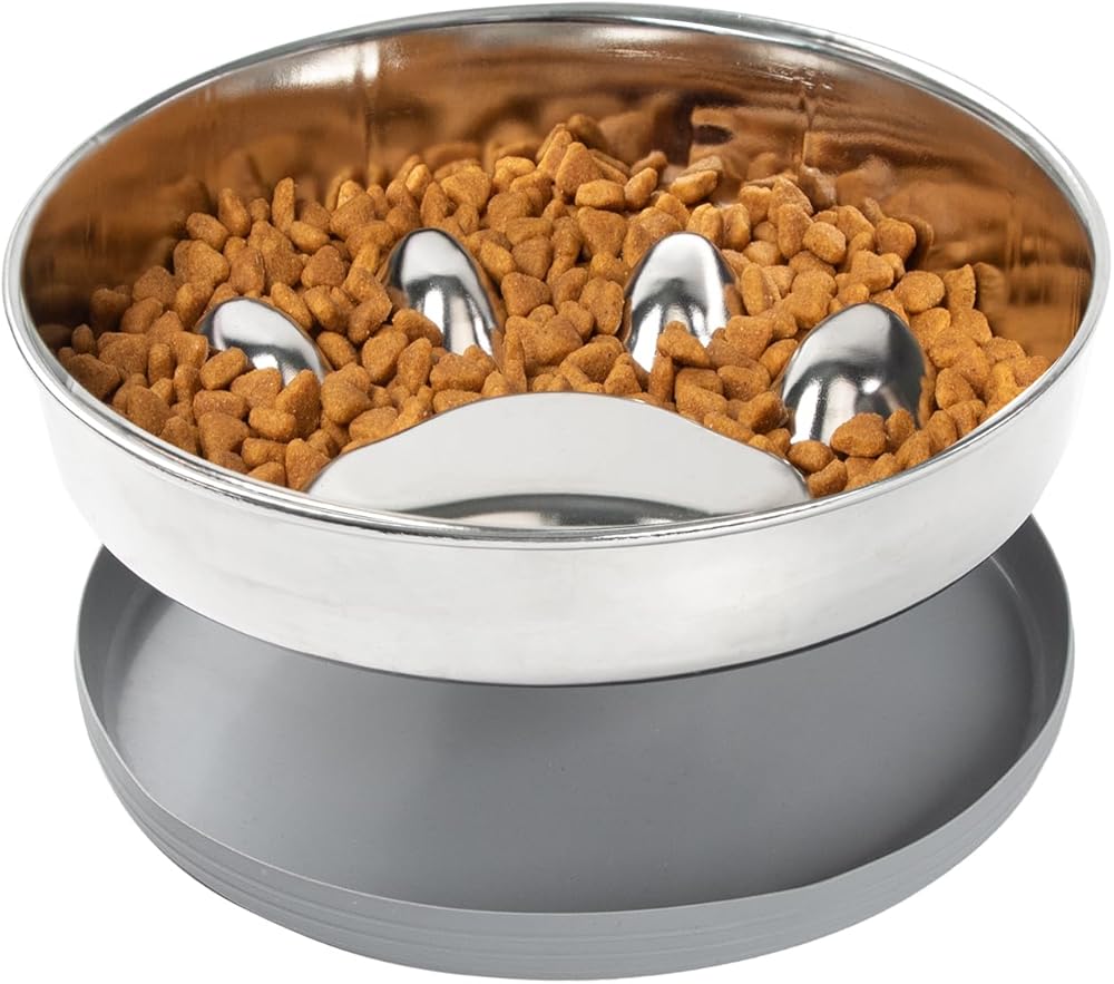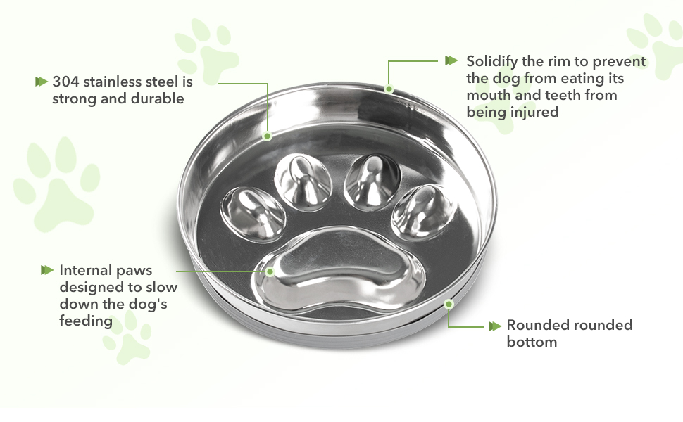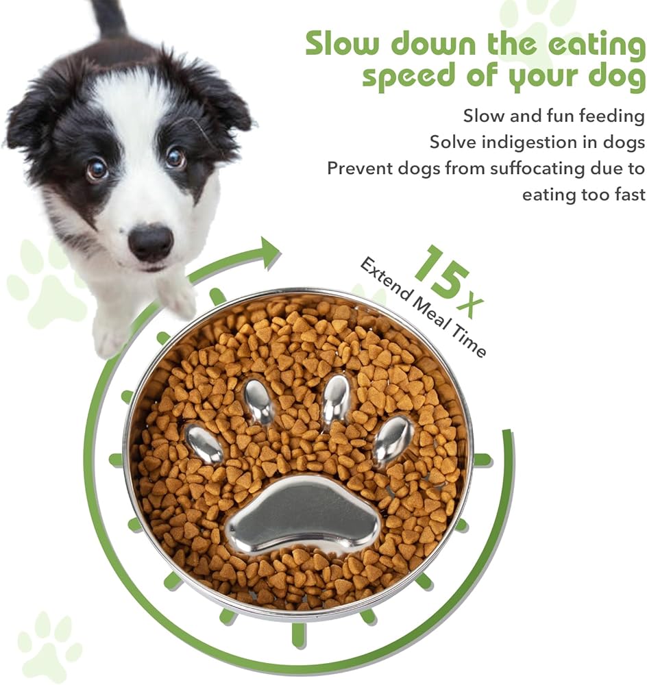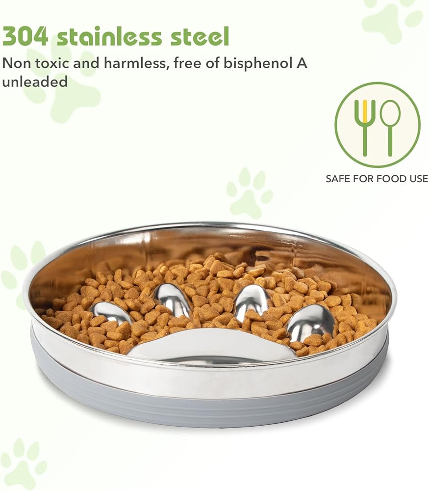 وعاء تغذية بطيء للكلاب من كيتجو مصنوع من الفولاذ المقاوم للصدأ مع قاعدة من السيليكون غير قابلة للانزلاق، وعاء ماء للكلاب مناسب لسلالات الكلاب الصغيرة والمتوسطة، وعاء على شكل مخلب كلب