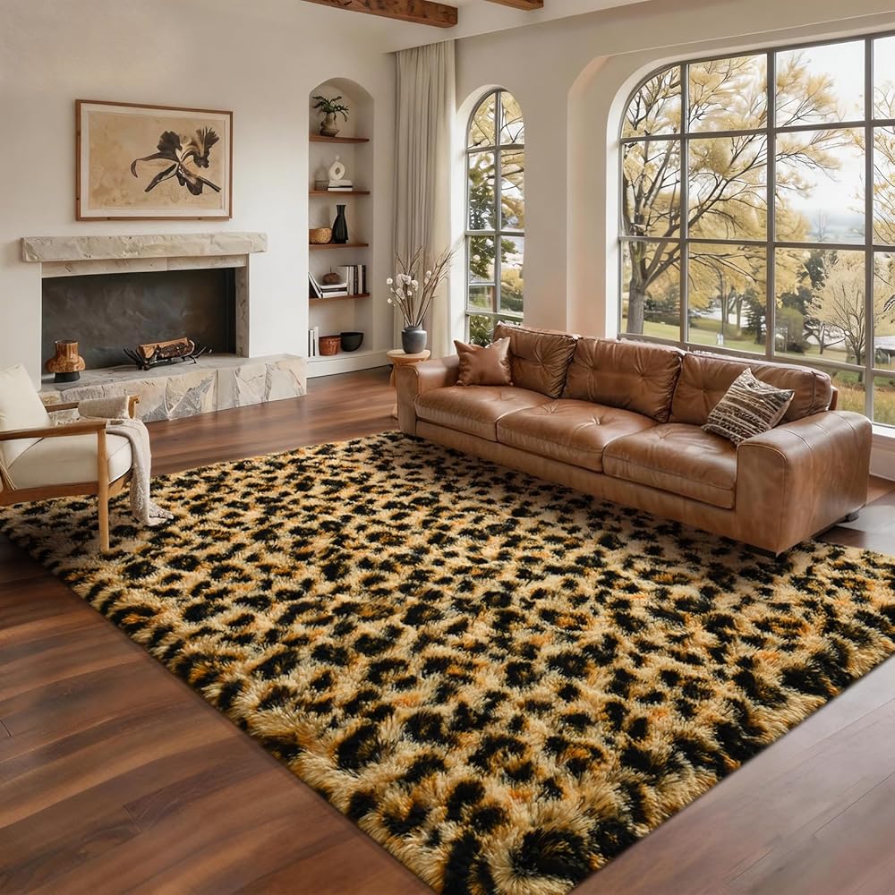 [سجادة منطقة حديثة]: مصممة بنمط الفهد اللطيف، تبدو هذه السجادة أنيقة في المساحات الصغيرة والكبيرة، ولافتة للنظر وأنيقة، والتي يمكن أن تتناسب بسهولة مع أي نوع من الغرف، مثل غرفة نوم الأطفال، وغرفة الحضانة...