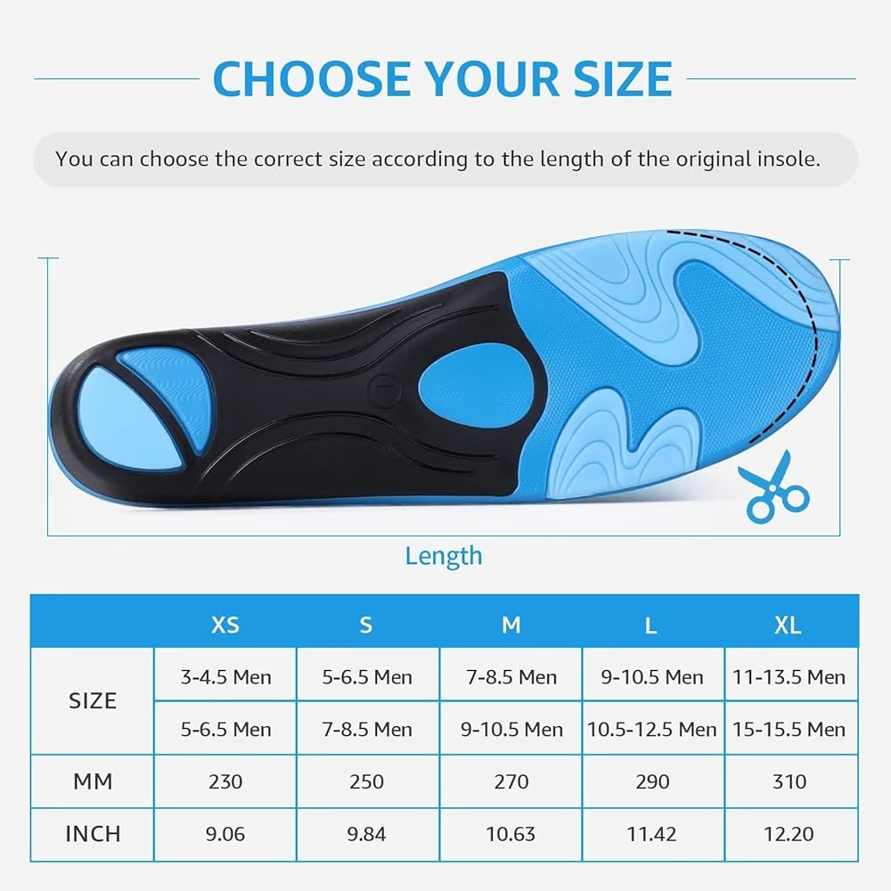 اختر مقاسك بعناية: نعال التهاب اللفافة الأخمصية لدينا تأتي في مجموعة متنوعة من المقاسات لتناسب معظم الأقدام. تأكد من التحقق جيدًا من مقاس حذائك وشراء الطراز الصحيح قبل الشراء.
