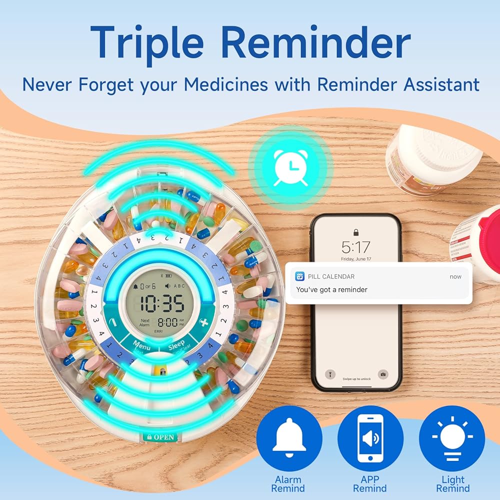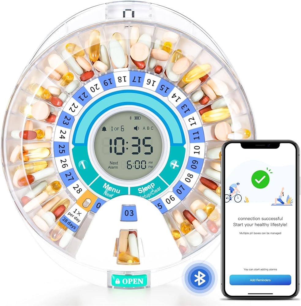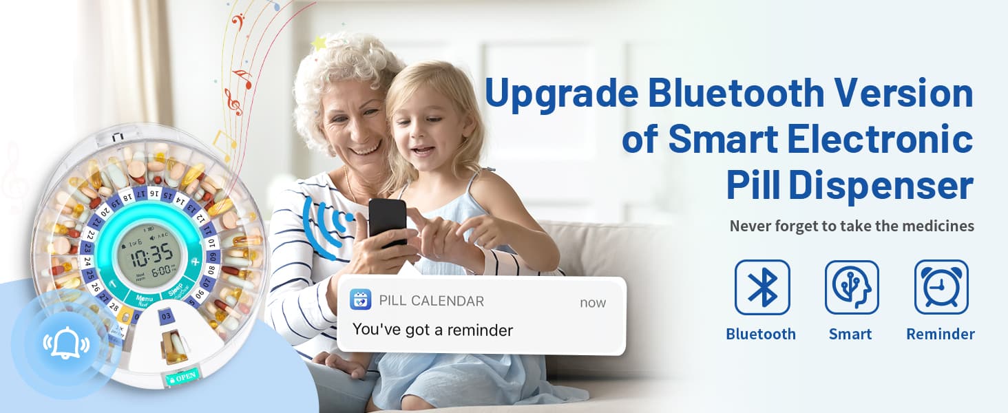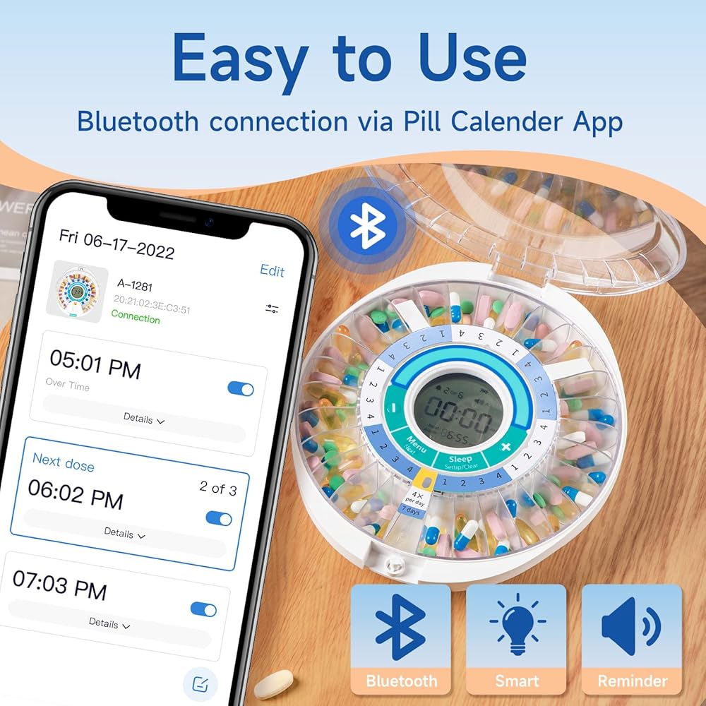 [موزع حبوب الدواء الذكي بتقنية البلوتوث]: إصدار Colorwing Bluetooth من موزع الأقراص الأوتوماتيكي الإلكتروني من خلال برنامج إعداد تطبيق "Pill Calender" والتوقيت والجرعات، لمساعدتك على تخصيص خطة حياة صحية، دائمًا من أجل مرافقتك الصحية.