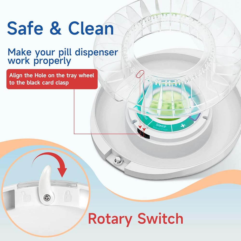 [آمن ونظيف]: المفتاح الخارجي مخفي أسفل علبة حبوب الدواء، وهو آمن ويسهل أيضًا الإجراء المعقد لفتح المفتاح. ودية لكبار السن أو التهاب المفاصل. كما أنه من المريح إخراج خزان الدواء للتنظيف.