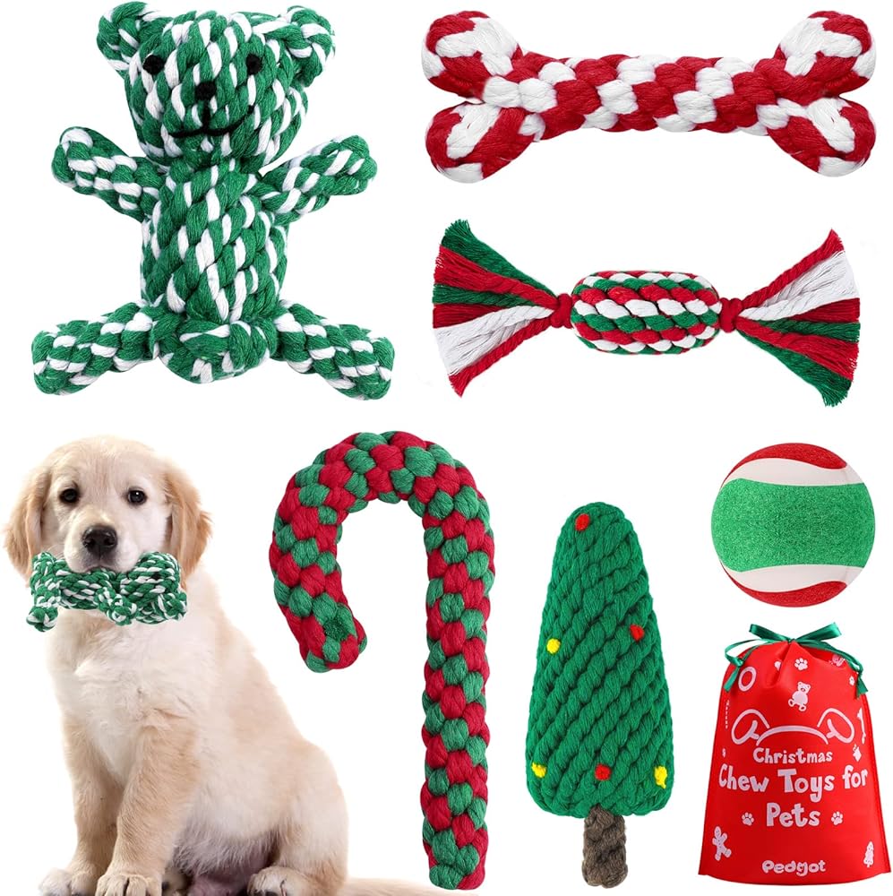 Pedgot 6 قطع عيد الميلاد الكلب مضغ لعبة الكلب حبل اللعب حلوى قصب الحيوانات الأليفة مضغ اللعب مضغ التدريب اللعب أنماط متنوعة للكلاب الصغيرة والمتوسطة الكبيرة
