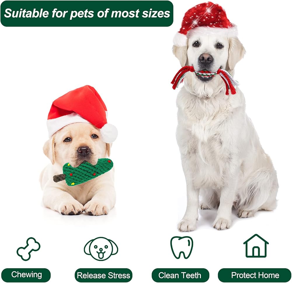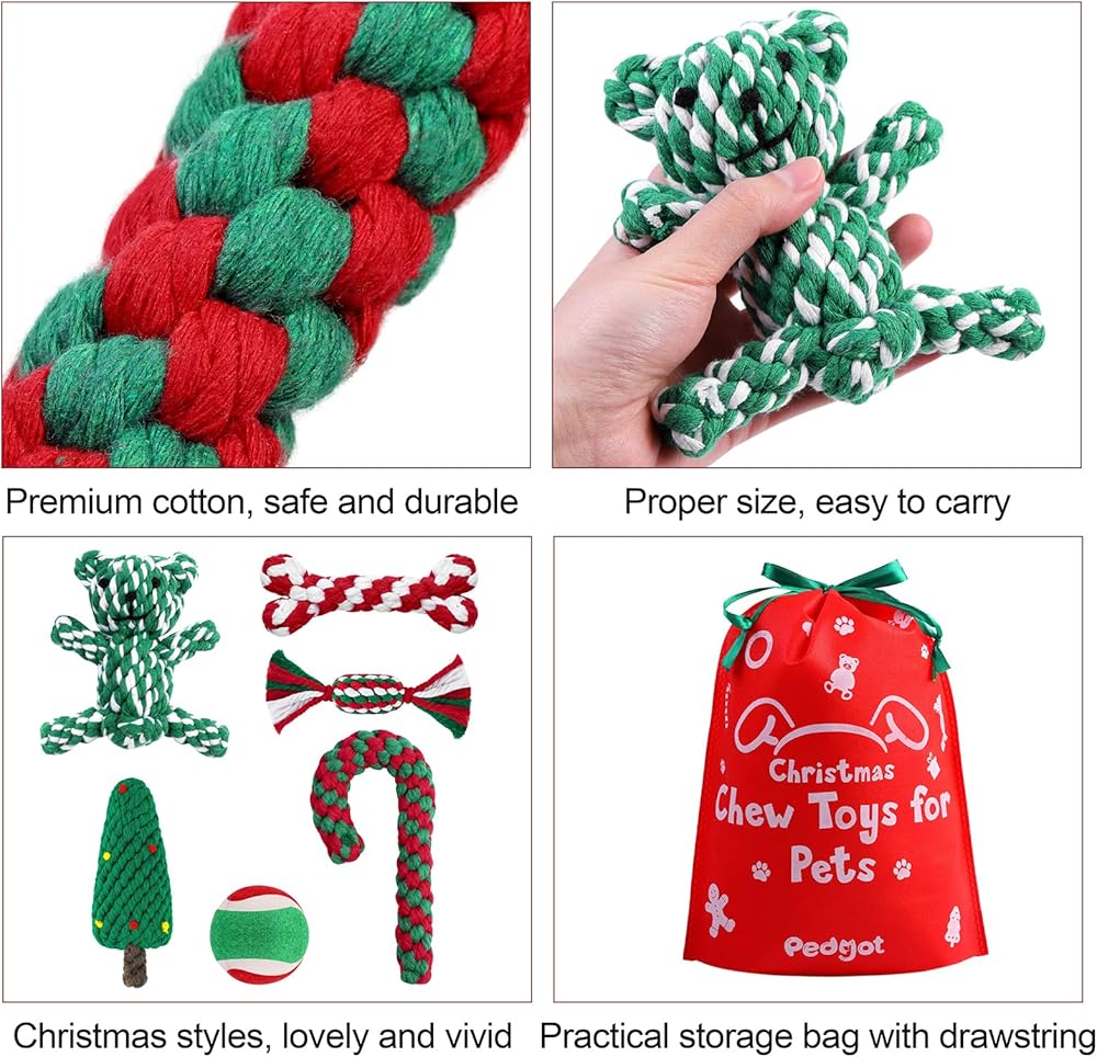 Safe and sturdy material: our Christmas toys are made of soft cotton ropes, tightly woven and wear-resistant, which can be used for pet's chew training and accompany your pet for a long time