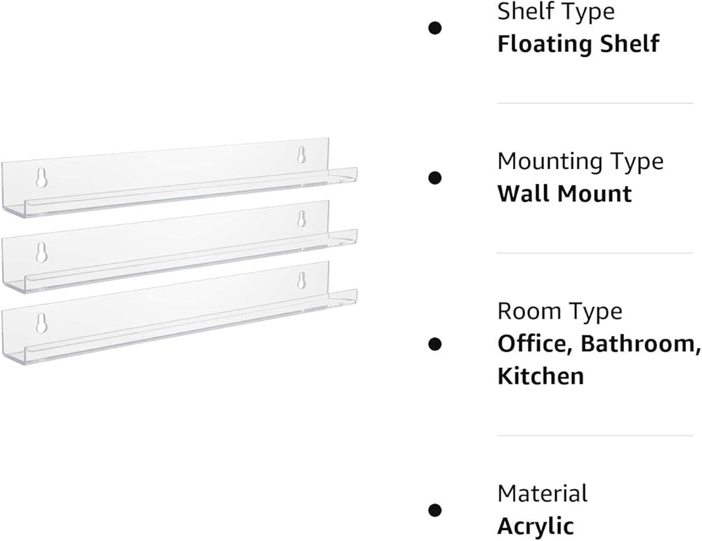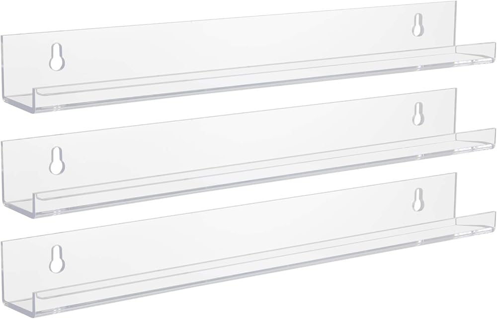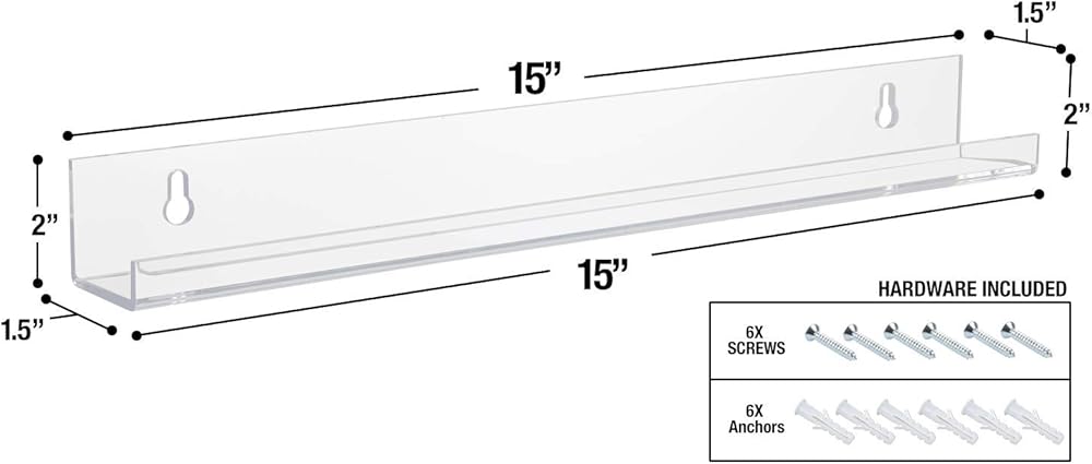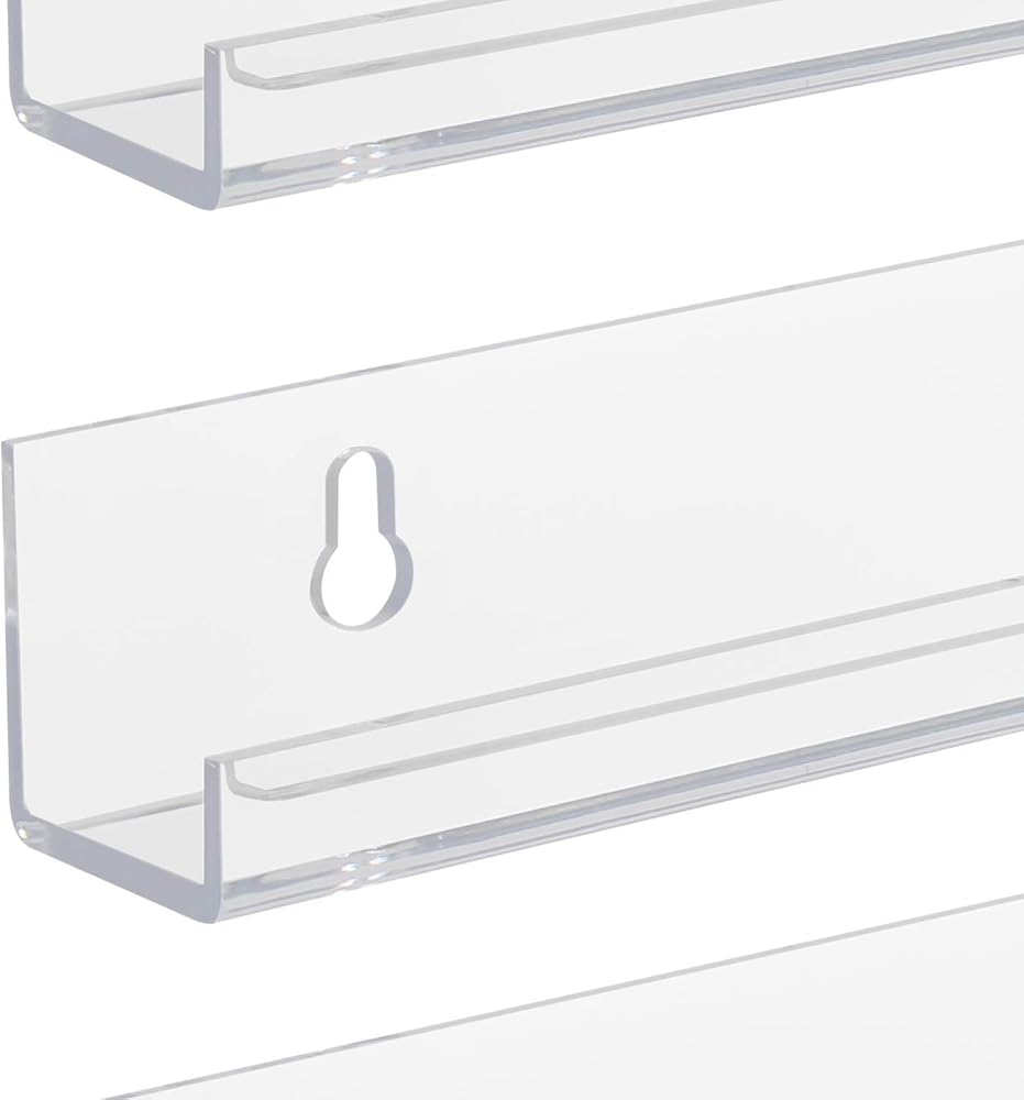 تصميم حديث متين: أرفف عائمة غير مرئية من الأكريليك الشفاف مصنوعة من أكريليك PS/أكريليك متين بسمك 4 مم - أقوى وأكثر أمانًا من الزجاج - مناسبة للاستخدام المنزلي أو الاحترافي - تنظيف بالمسح - عبوة من 6 قطع تحتوي على 90-120 زجاجة من طلاء الأظافر - يبلغ مقاسها تقريبًا 15 بوصة × 1.5 بوصة × 2 بوصة