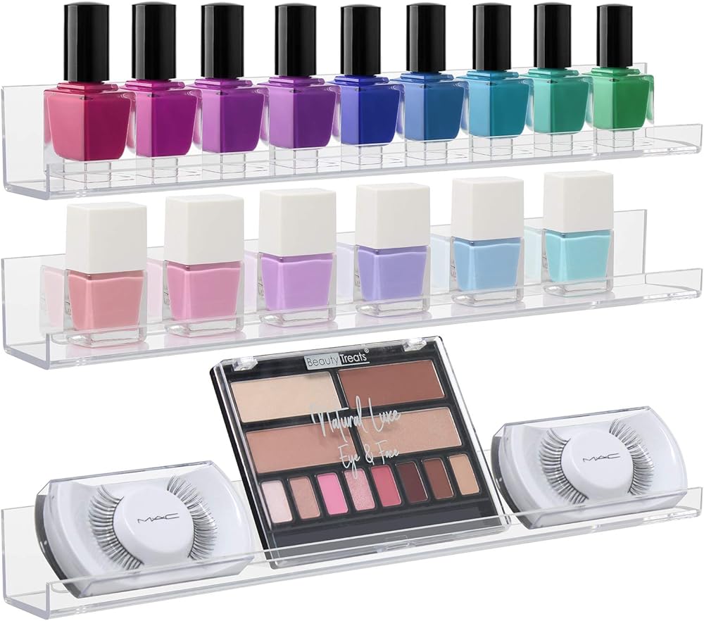 أرفف أكريليك متعددة الأغراض: رائعة لحامل طلاء الأظافر في صالونات الأظافر ومستحضرات التجميل والمكياج والعطور والزيوت العطرية في المنتجعات الصحية ومجموعة توابل المطبخ والكتب وتماثيل فانكو بوب وغيرها من الأشياء الزخرفية الصغيرة
