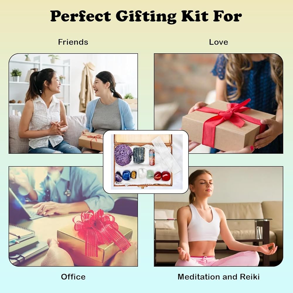 هدايا روحية: مجموعة أحجار الكريستال العلاجية الخاصة بنا هي اختيار مثالي كهدية لعيد الميلاد والذكرى السنوية وعيد الحب وعيد الأم وعيد الأب وعيد ميلاد أحبائك. تناسب النساء والفتيات، كل مجموعة جاهزة للهدايا، معبأة بعناية بشغف في صندوق خشبي جميل. رائعة للتأمل أو شفاء الشاكرا أو اليوغا أو الريكي أو الممارسة الروحية أو ديكور المنزل أو ديكور المكتب.