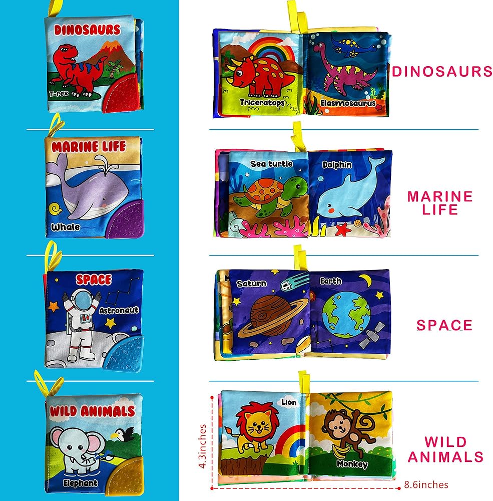 مجموعة من 4 موضوعات - الديناصورات، الحيوانات البرية، الحياة البحرية، الفضاء، هذه الكتب المصنوعة من القماش الناعم ستساعد الأطفال على رؤية هذه الكلمة، وجلب التحفيز البصري، وتحسين الذاكرة. إنها لعبة تعليمية مبكرة رائعة.