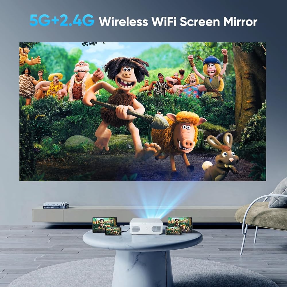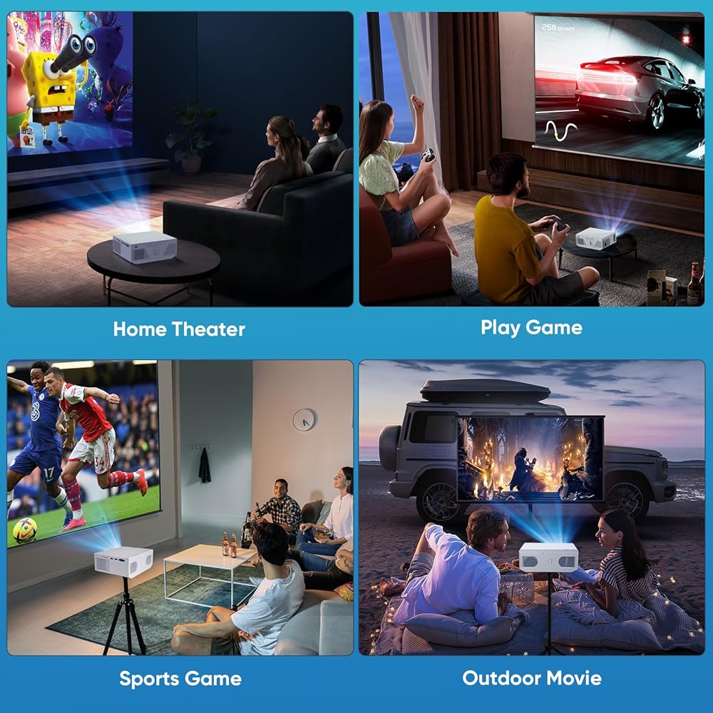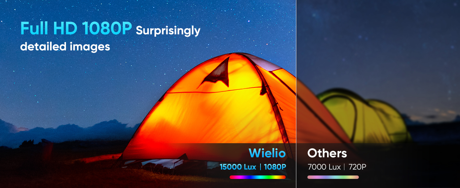 جهاز عرض مع واي فاي وبلوتوث، جهاز عرض Wielio 500 ANSI Native 1080P 15000 Lumen 4K جهاز عرض فيديو محمول للمنزل في الهواء الطلق متوافق مع هاتف Iphone Android/TV Stick/PS5/PC/Laptop