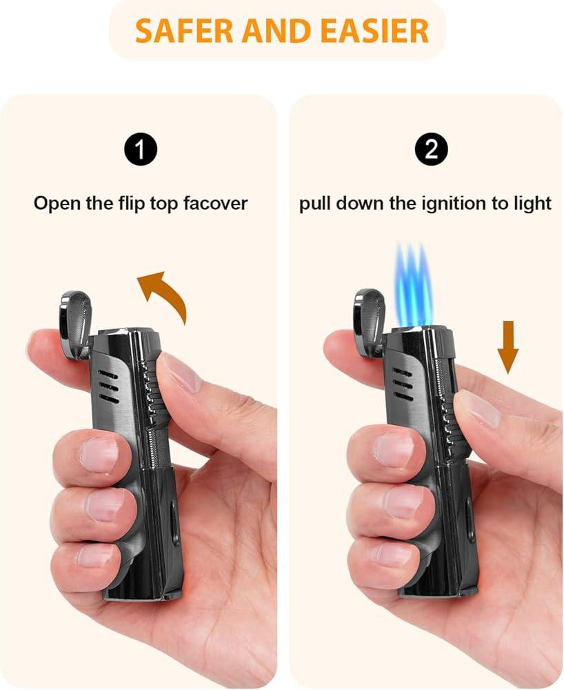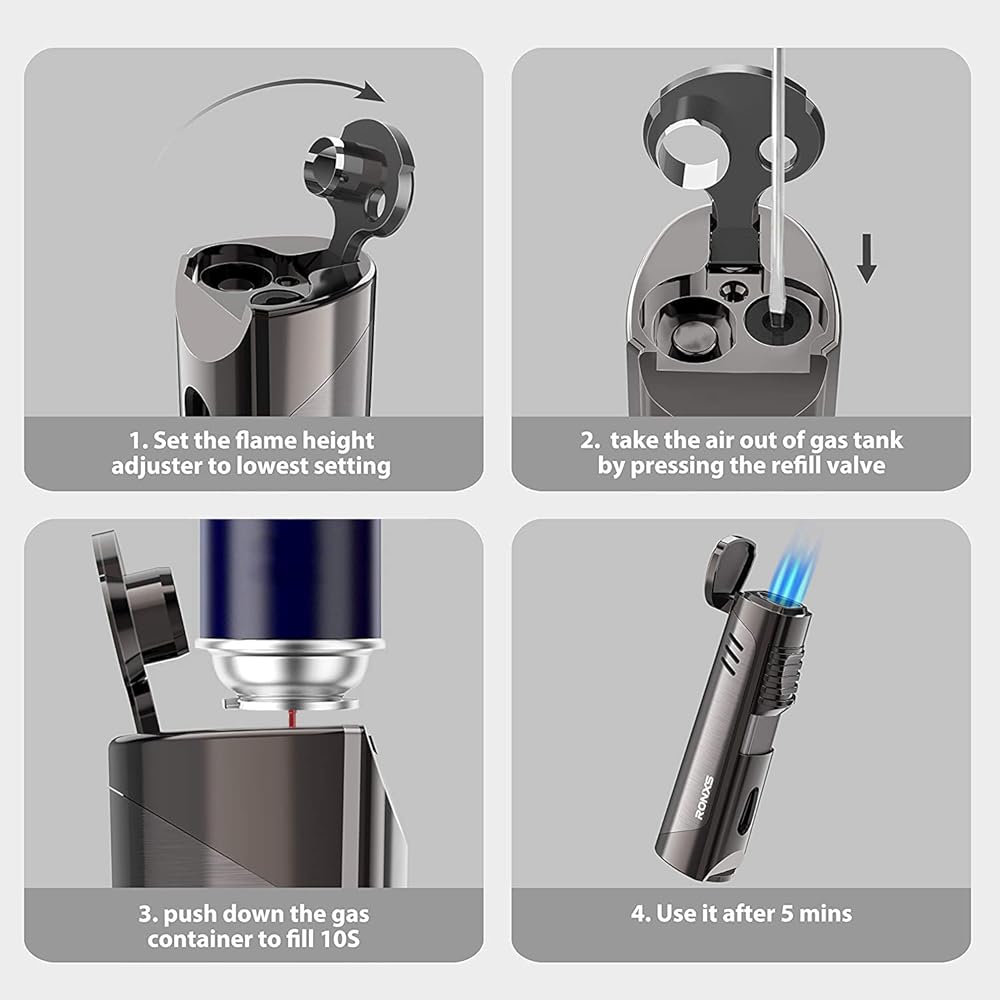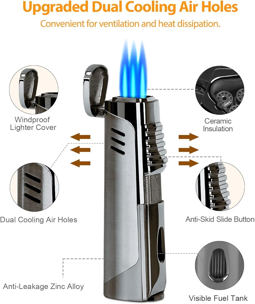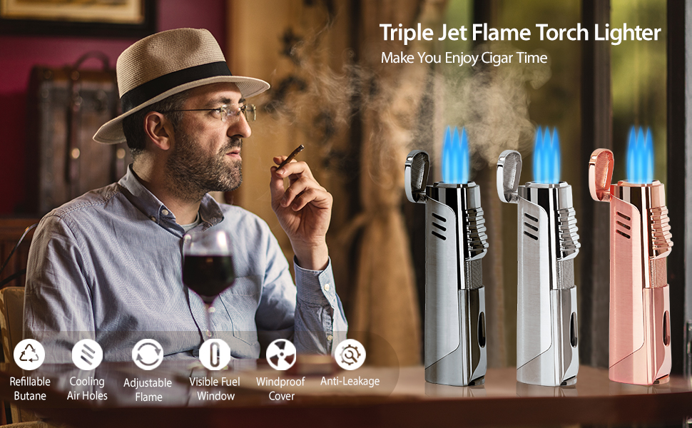• لهب ثلاثي نفاث قابل للتعديل - ولاعة سيجار RONXS مع 3 لهب نفاث مقاومة للرياح بشكل كبير، ولديها القدرة على الإضاءة بشكل أسرع وأكثر كفاءة من الموديلات المفردة أو المزدوجة اللهب. ويتميز بقرص منظم لتدفق الغاز لضبط طول اللهب وحجمه بسهولة وفقًا لاحتياجاتك.