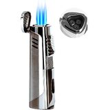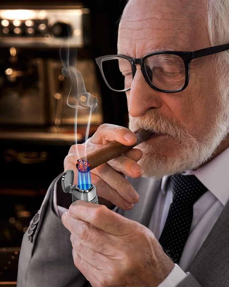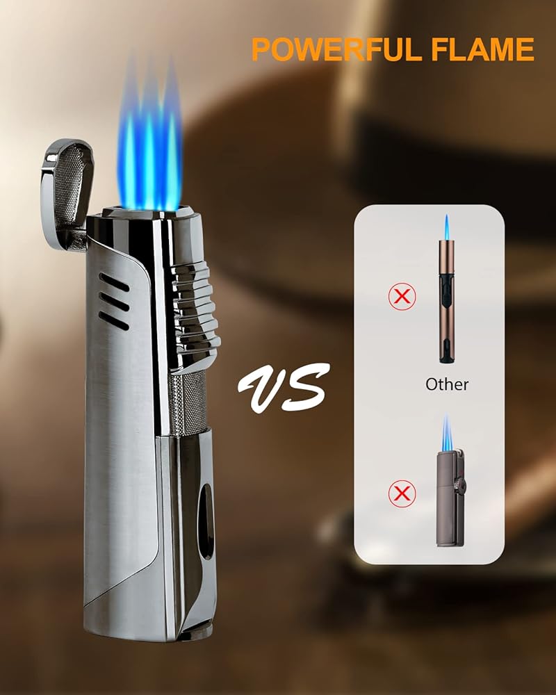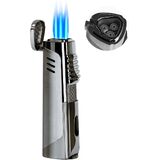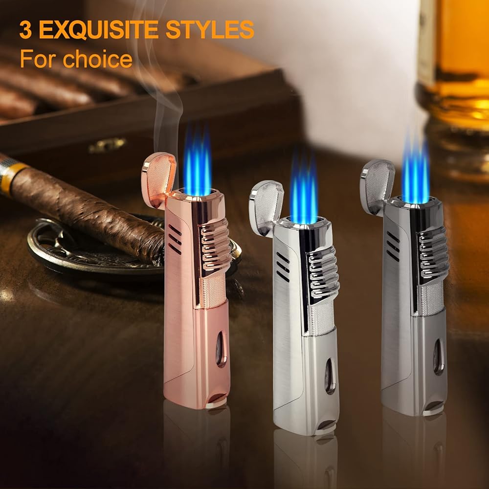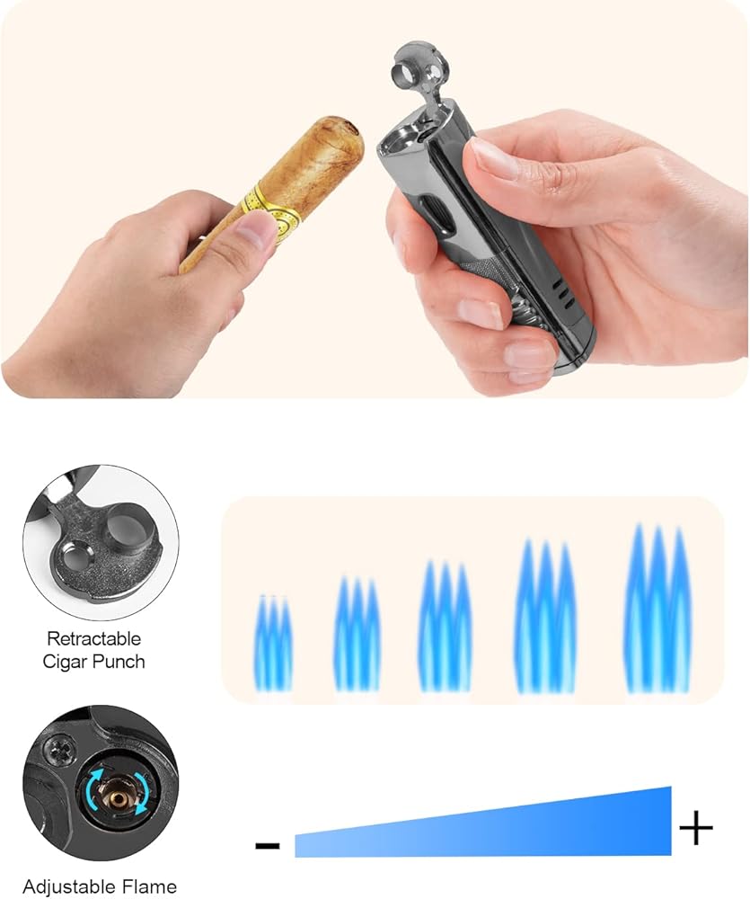 ولاعة سيجار RONXS، ولاعة سيجار ثلاثية اللهب مع لكمة، ولاعة بوتان بجيب مقاوم للرياح قابلة لإعادة الملء، هدية مثالية للأب الرجالي (غاز البوتان غير متضمن)