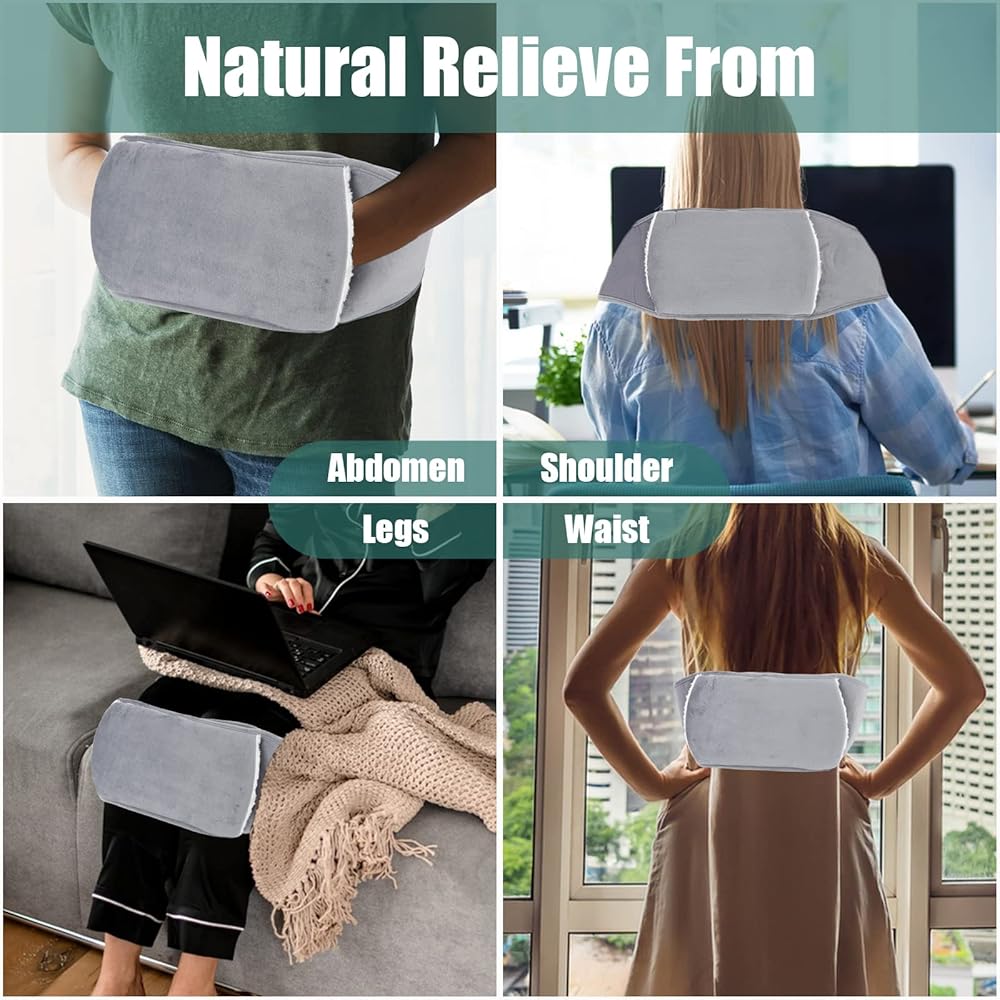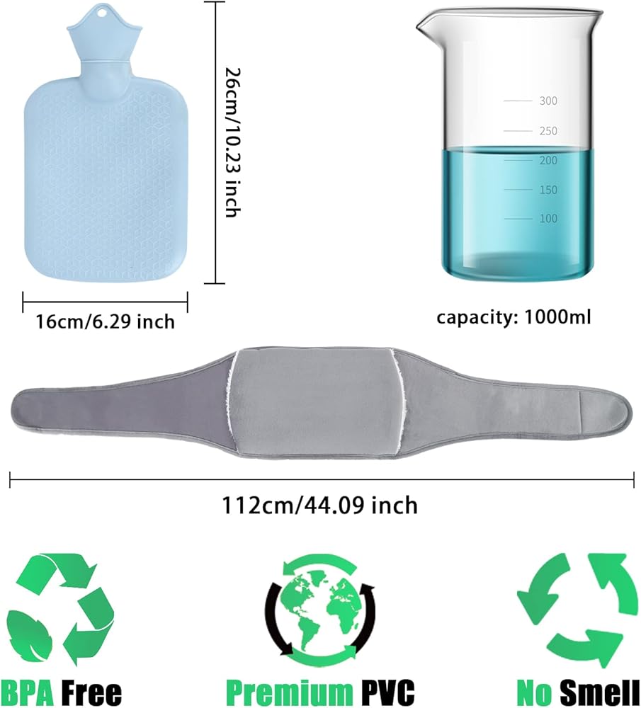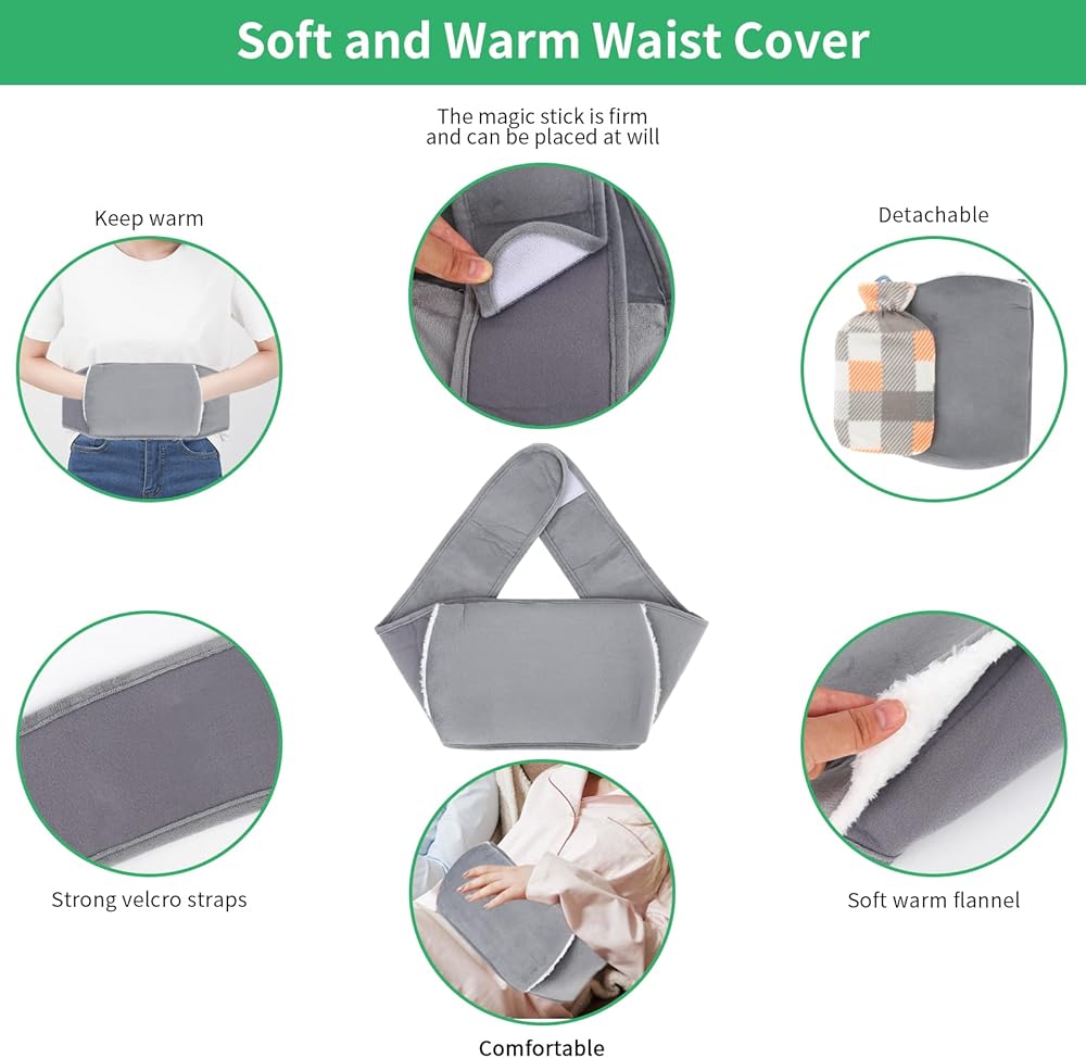 • Waist cover: This grey waist cover with soft plush keeps the hot water bottle warm for long periods of time, preventing direct heat from contacting your skin and causing burns. The Long waist cover has a magic sticker that attaches the waist cover to your body to free your hands, allowing you to move freely while enjoying the warmth.