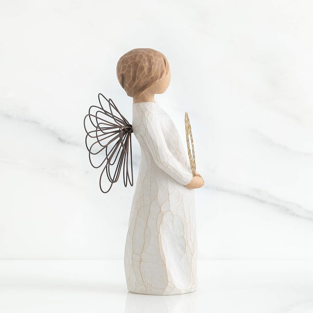 ويلو تري هو خط حميم من المنحوتات التصويرية التي تتحدث بطرق هادئة للشفاء والراحة والحماية والإلهام. تقوم الفنانة سوزان لوردي بنحت كل منحوتة أصلية من ويلو تري يدويًا. هذه القطعة مصبوبة من نحتها الأصلي ثم رسمت يدويًا. يتميز المجسم بفتاة تحمل إكليل معدني ذهبي مصنوع من الراتنج ومطلي بطلاء خالٍ من الرصاص. هذه القطعة هي طريقة مثالية للتعبير عن الشكر أو السماح لشخص ما بمعرفة أنها مميزة. يتم توفير المنتج في صندوق هدايا يحمل العلامة التجارية مع حشوة الرقة التي تحتوي على ملاحظة موقعة من سوزان لوردي وبطاقة هدايا بما في ذلك المشاعر: لديك قلب جميل ومساحة لرسالتك الشخصية. الارتفاع: 14 سم.