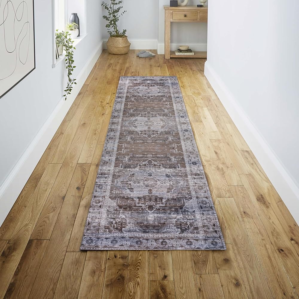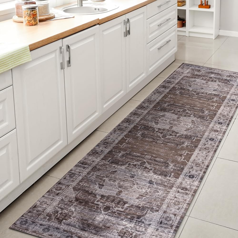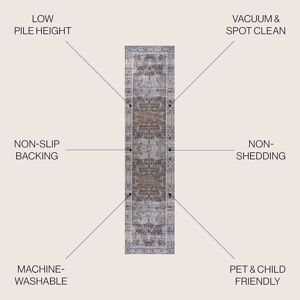 جوناثان واي WSH100C-28 ميدالية ألانيا المزخرفة قابلة للغسل في الغسالة، بني/رمادي فاتح 2 قدم × 8 قدم، سجادة عداء، سهلة التنظيف، لا تتساقط للمنزل، المطبخ، غرفة المعيشة، غرفة النوم، غرفة الطعام