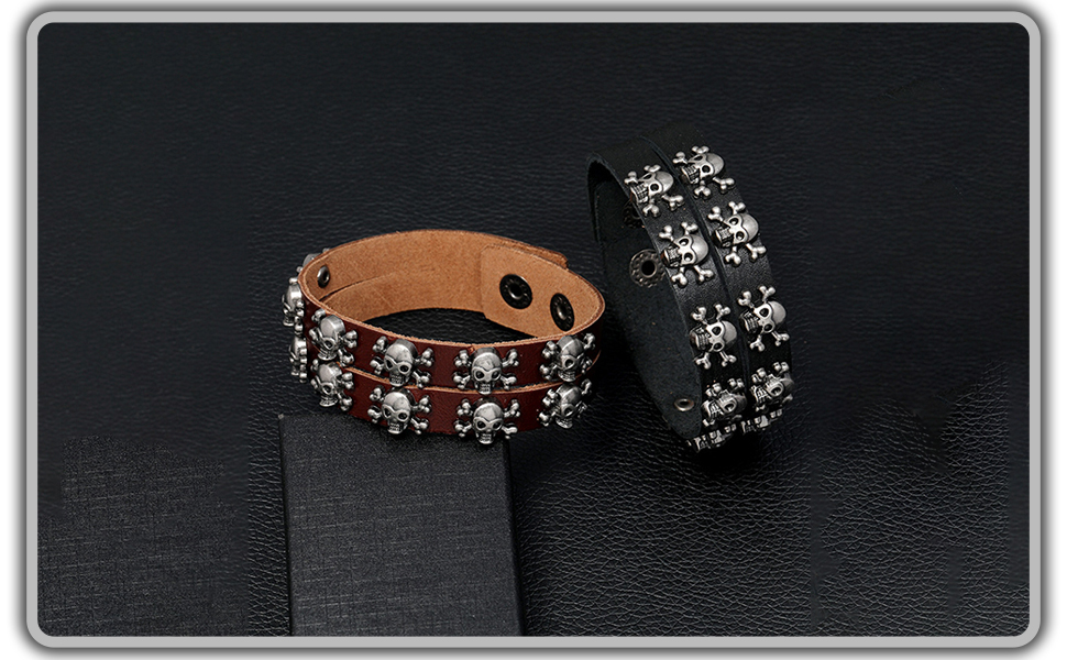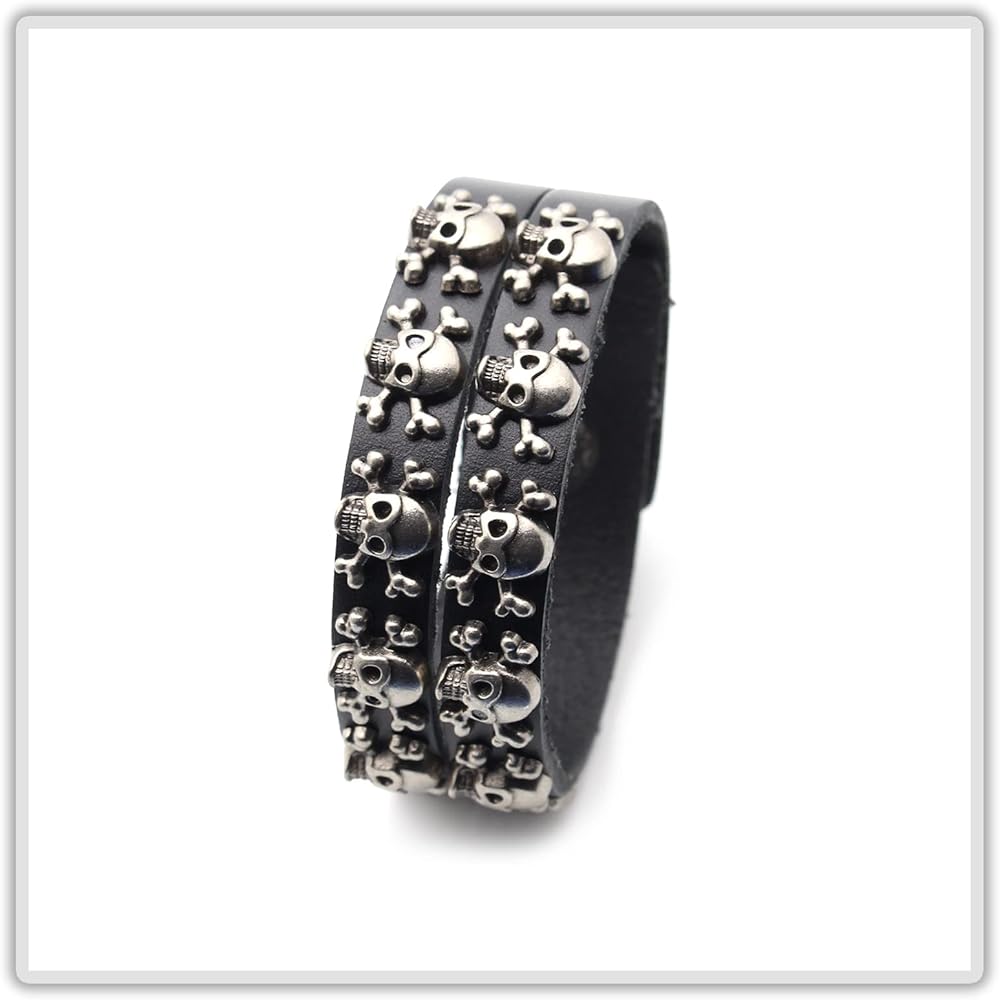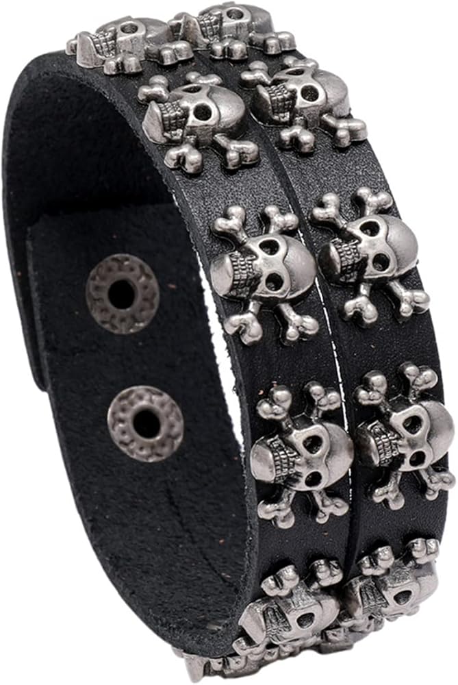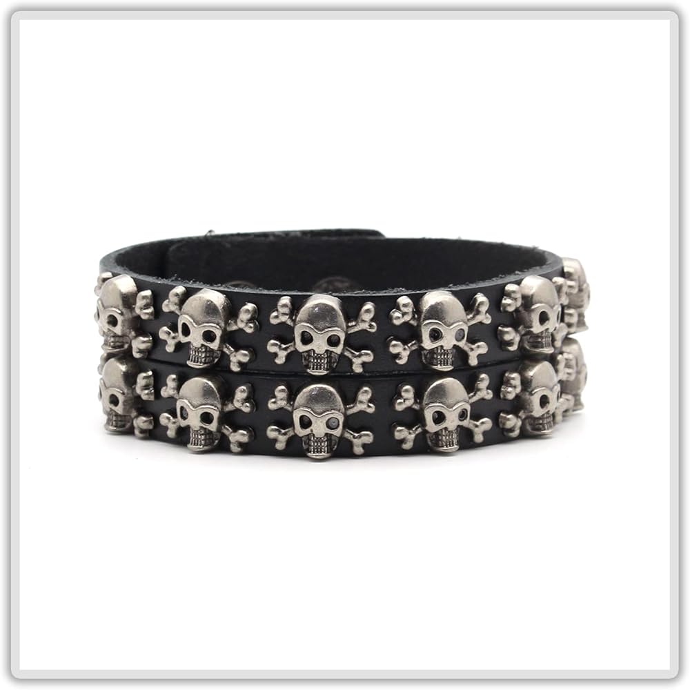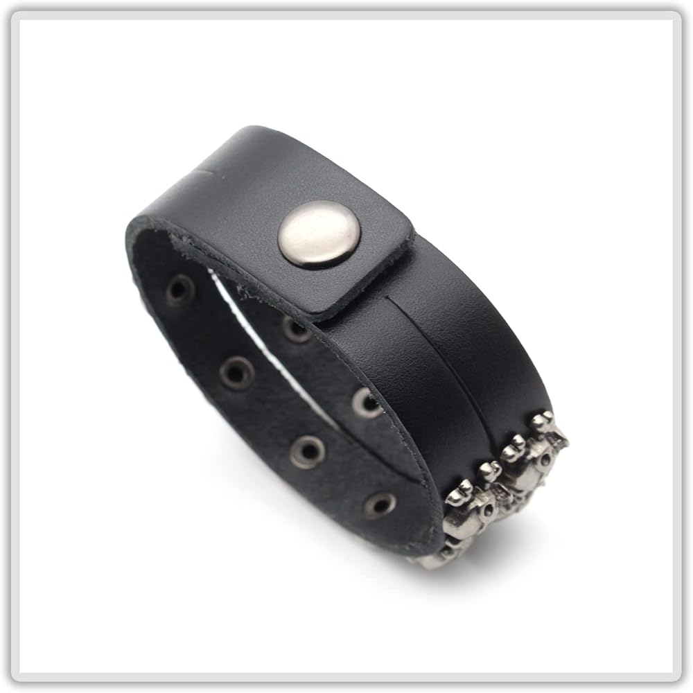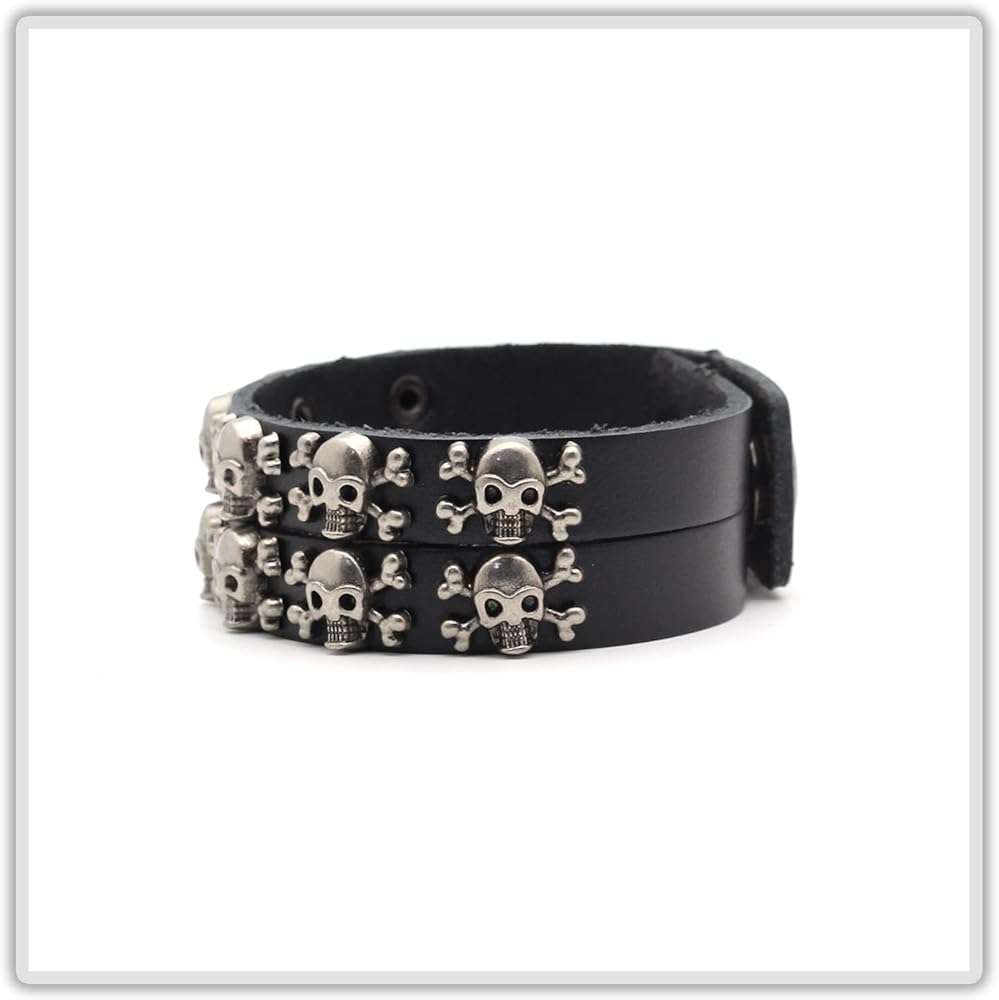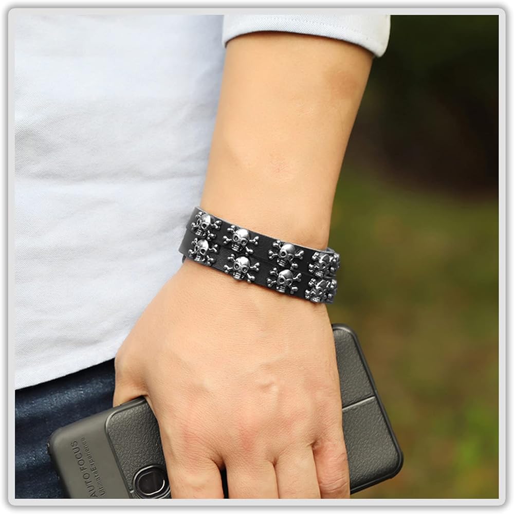 سوار Mgutillart Punk Metal Skull سوار معصم جلدي عريض (أسود)