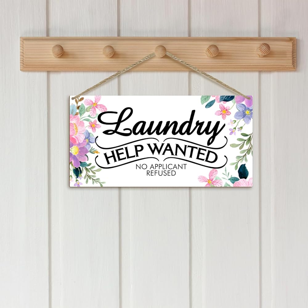 لافتة غسيل، ديكور غرفة الغسيل، لوحة معلقة على الحائط من خشب المزرعة مع حبل، هدية الترحيب بالمنزل الجديد للأم والأم والزوجة، رف باب المنزل، لوحة خشبية زهرية مطلوب مساعدة في الغسيل -07