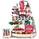 This wooden tiered tray decor set is characterized by the theme of fall and adopts warm colors and various exquisite and distinctive elements, such as pumpkins, broom, lantern and cute words, which are attractive and can show your expectation for the coming harvest season.