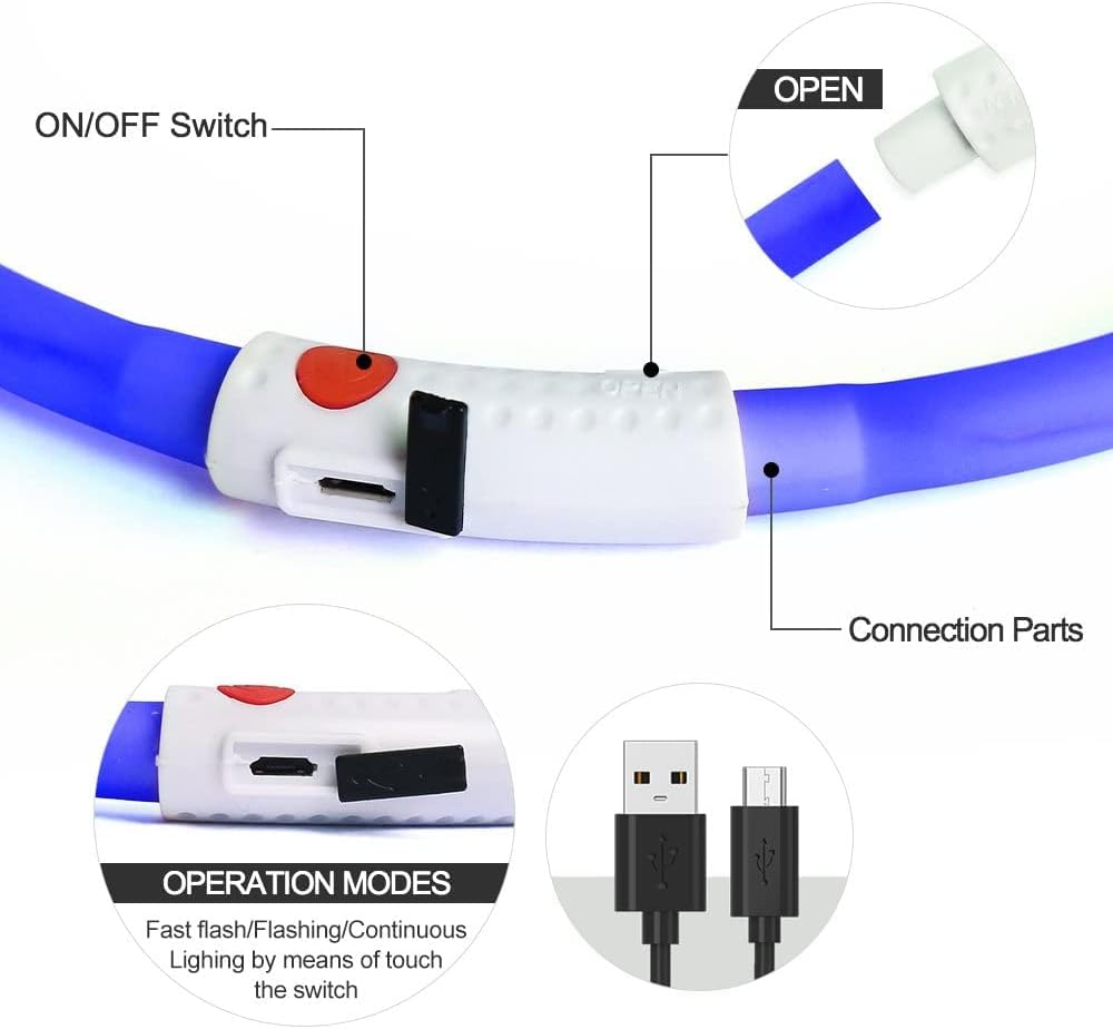 💡طوق أمان LED - طوق الكلاب Illumifun LED مشرق للغاية ويمكن رؤيته بسهولة. تحتوي على قطعتين أقل من الطرفين وأنبوب توجيه الضوء من مادة TPU ليتوهج بزاوية 360 درجة.