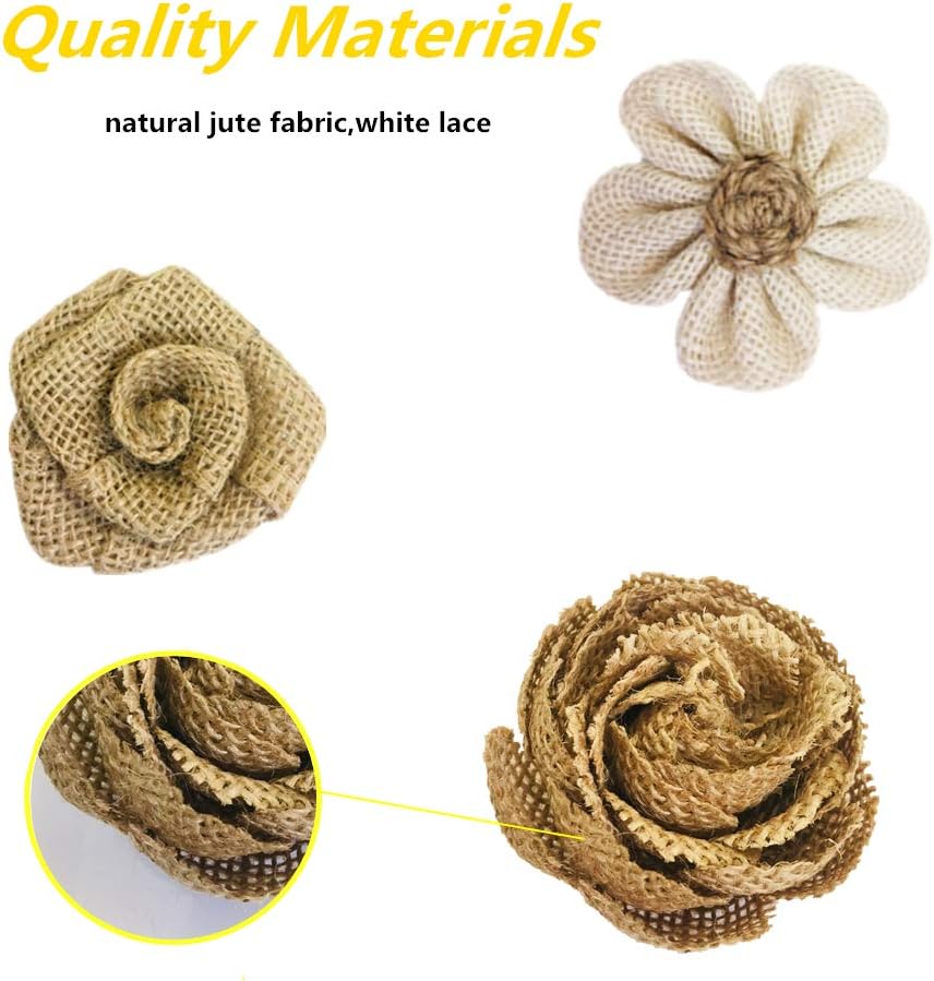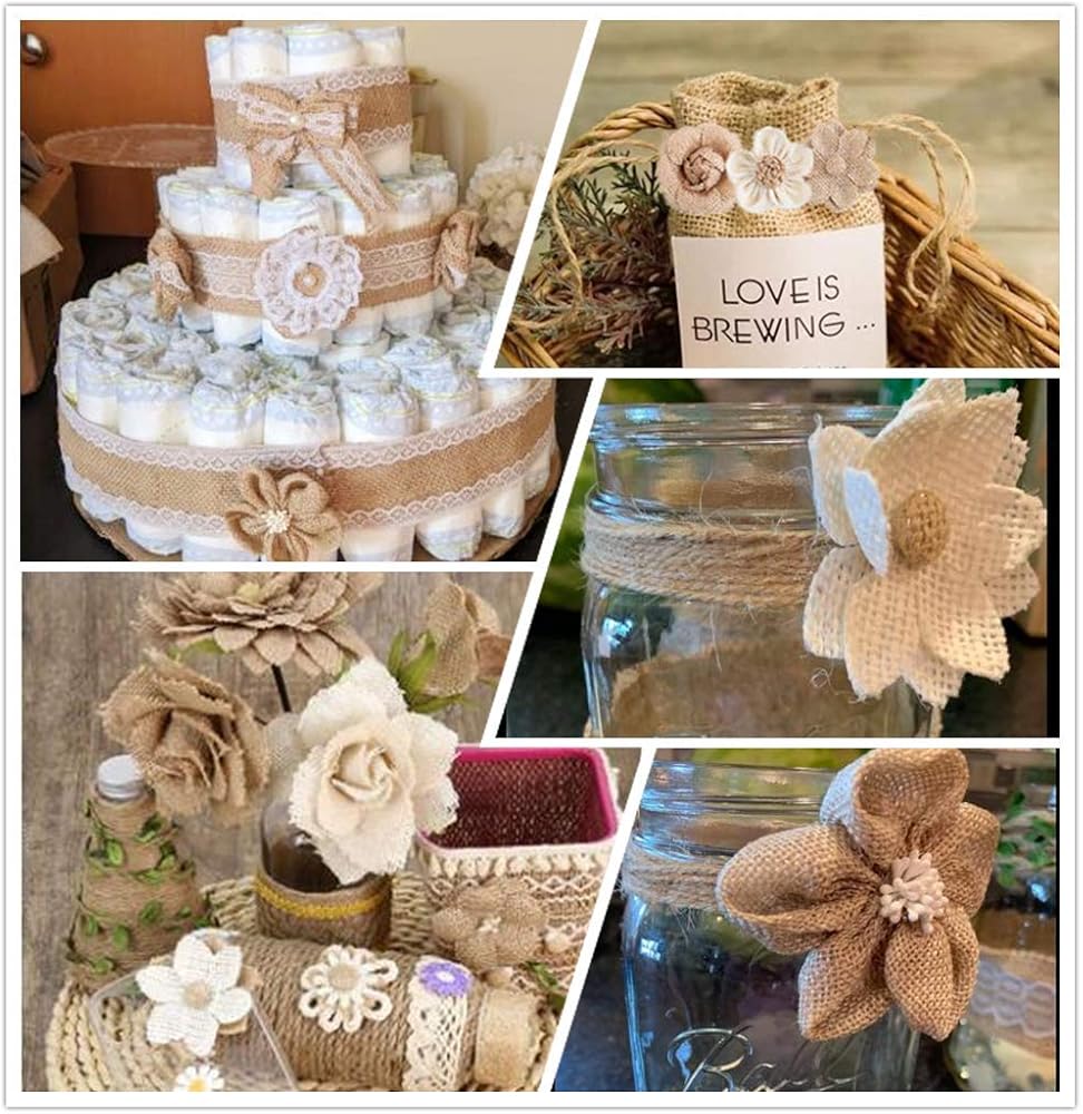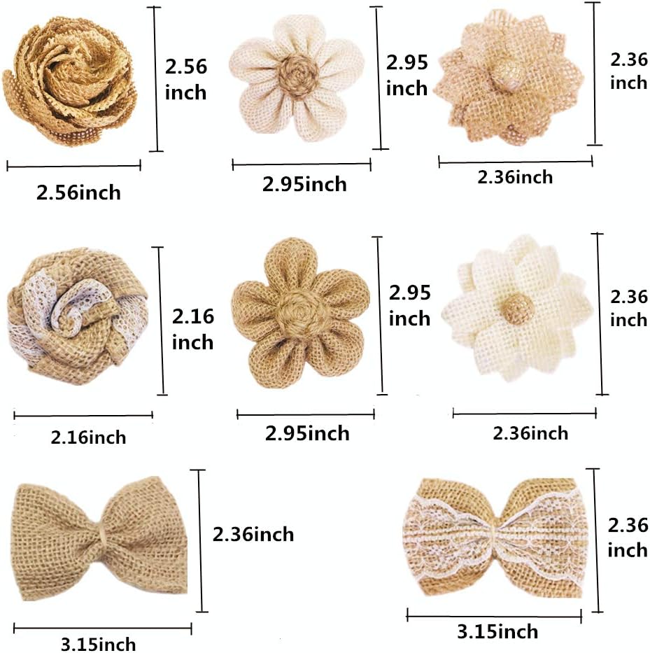 مجموعة زهور الخيش 28 قطعة من OZXCHIXU، تتضمن 11 نمطًا من زهور الخيش المصنوعة يدويًا و3 أنماط من عقدة الخيش، وزهور الخيش الطبيعية للحرف اليدوية وحفلات الزفاف وأعياد الميلاد