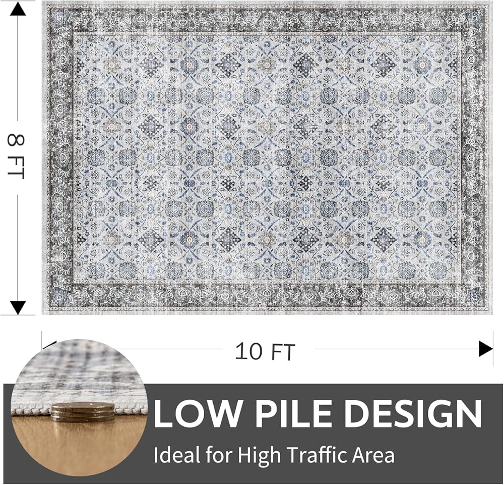 استخدامات متعددة - السجاد بمساحة 5x7 قدم و8x10 قدم مناسب لغرف النوم وغرف المعيشة. سوف تحمي أرضياتك من الخدوش والأضرار الطفيفة التي تسببها الأقدام والأثاث. ستناسب مطبوعات الأزهار العتيقة أي غرفة، مما يضفي إحساسًا مريحًا ومتطورًا على مدخل منزلك، وغرفة الطعام، وغرفة المعيشة، والمزيد
