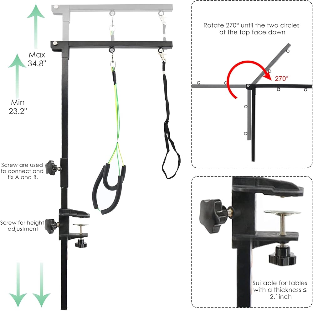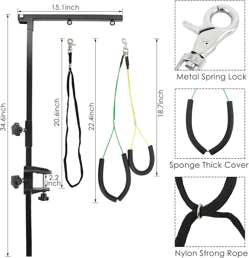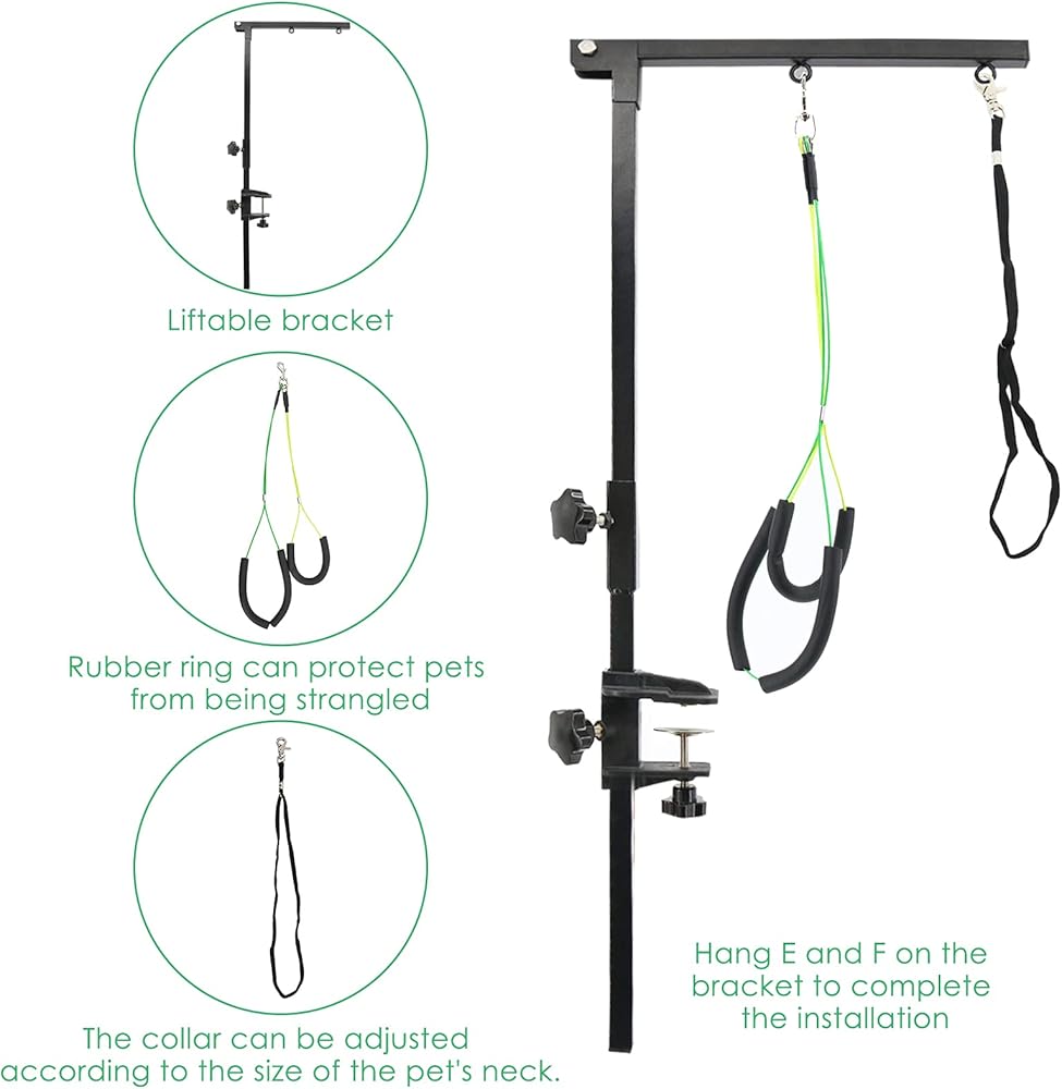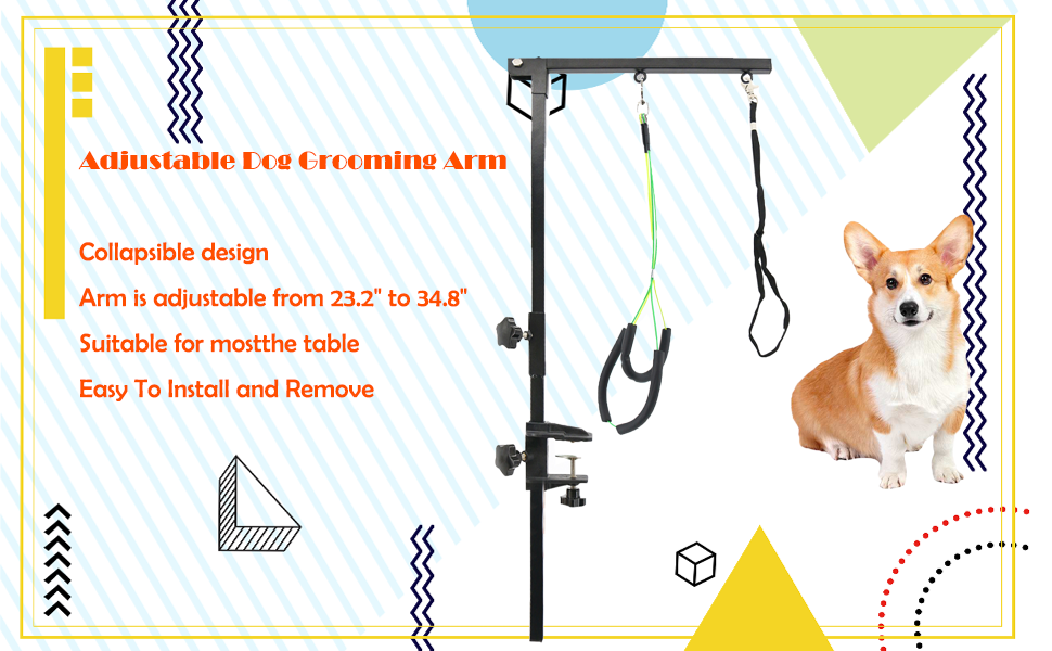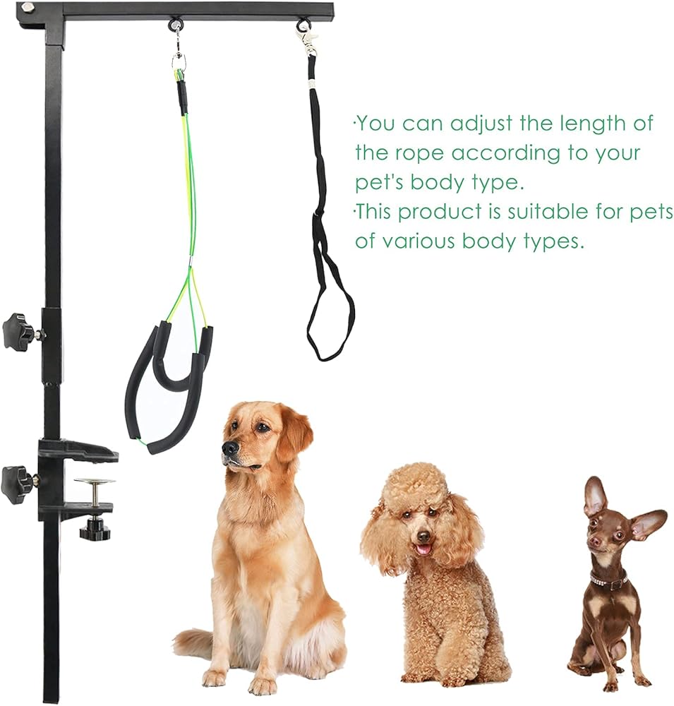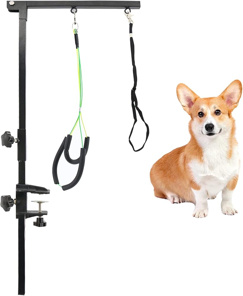 PetierWeit ذراع العناية بالكلاب مع مشبك قابل للطي، ذراع طاولة العناية بالكلاب قابل للطي مع حلقة حبل المشنقة، حامل لا يجلس على ارتفاع قابل للتعديل، أداة العناية بالحيوانات الأليفة الصغيرة والمتوسطة