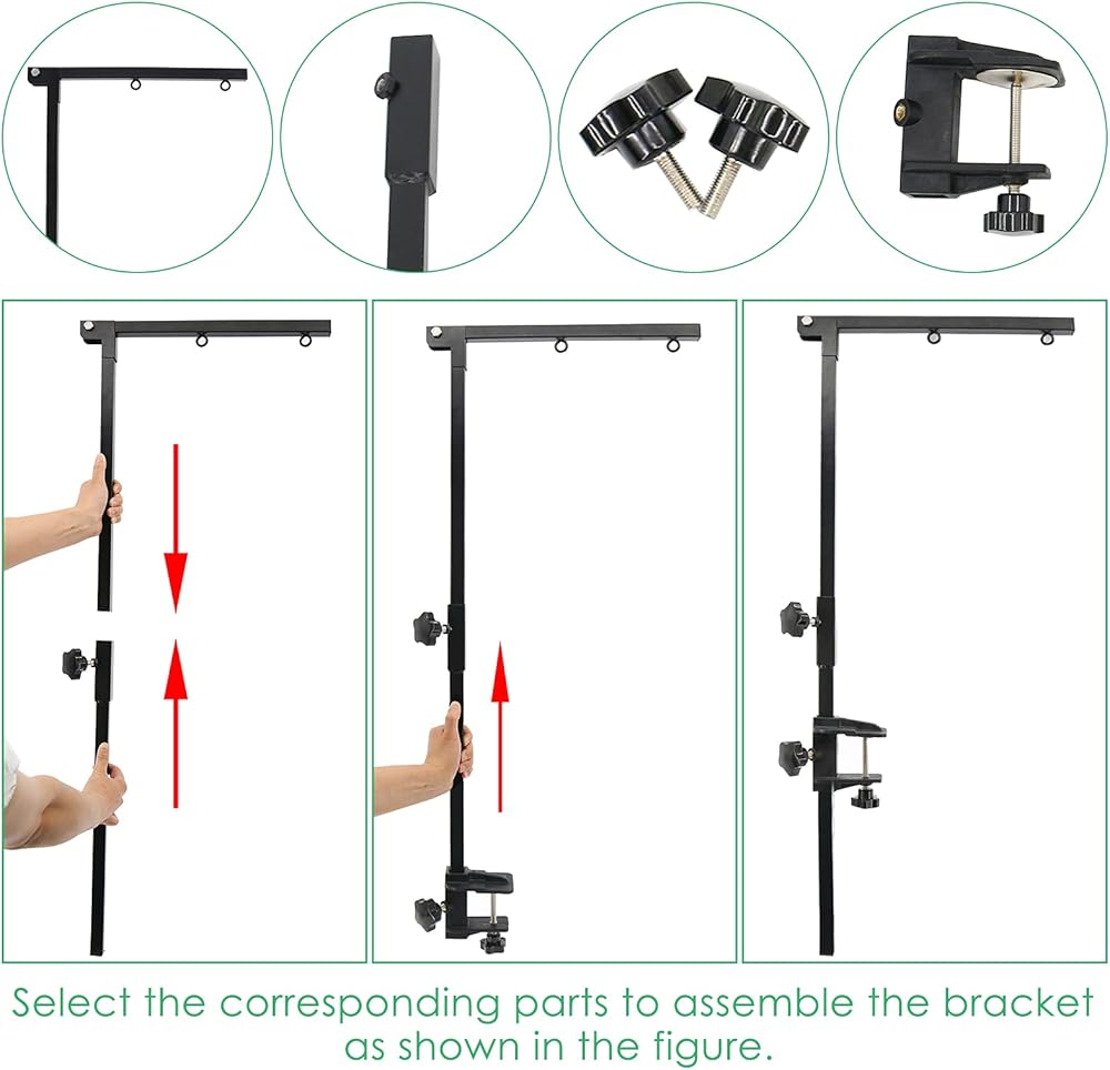 【محتويات العبوة】تأتي العبوة مع قطعة واحدة من ذراع العناية وقطعة واحدة من قضيب تمديد الذراع؛ قطعة واحدة من حامل المسمار وحلقة تزيين واحدة؛ قطعة واحدة من المشبك القابل للتعديل وقطعتين من البراغي. التركيب بسيط والفك مريح. (تعليمات التركيب متضمنة في العبوة)