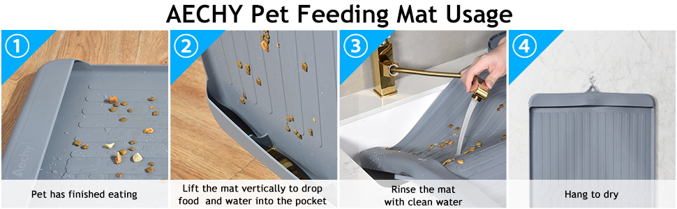 【تصميم جيب عملي】: أسهل طريقة لالتقاط جميع الانسكابات والانسكابات من الطعام والماء على بساط الماء للكلاب على الإطلاق! بعد تناول وجبات طعام حيوانك الأليف، ما عليك سوى رفع الجانب الآخر من بساط تغذية الكلاب بلطف حتى تنزلق البقايا والماء ببطء إلى الجيب. يمكنك حمل السجادة بأناقة للتنظيف، مما يوفر حماية مثالية لأرضيتك.