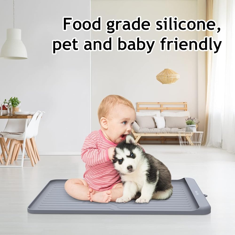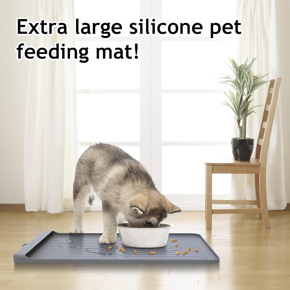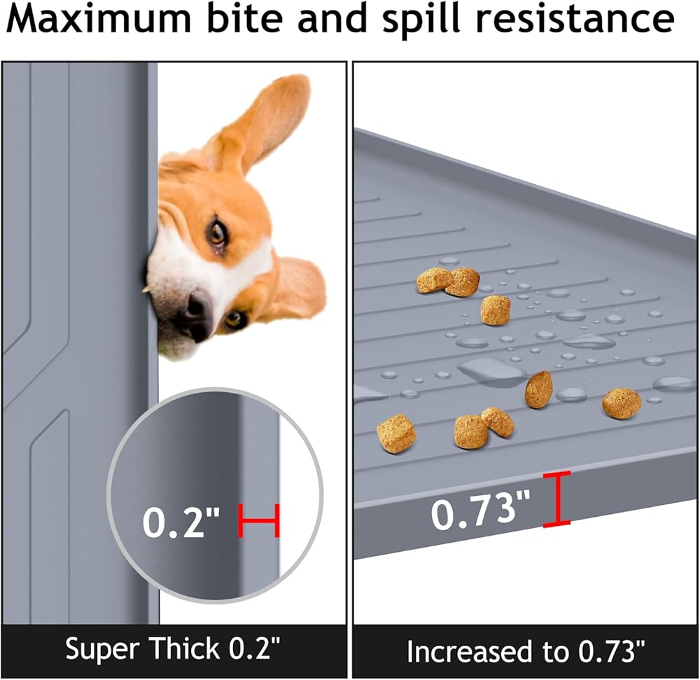 【سيليكون من الفئة الغذائية】: مقاس بساط وعاء الماء للكلاب مقاس 28 بوصة × 20 بوصة مناسب لمعظم أوعية الحيوانات الأليفة المتوسطة والكبيرة. مصنوعة من السيليكون الصالح للطعام بنسبة 100%، خالية من البيسفينول A، بدون رائحة وصديقة للبيئة. منع الحيوانات الأليفة من تناول الطعام الملوث بالأرضية. سجادة رائعة لحمل أوعية القطط والكلاب، ومغذية الطعام، ونوافير الشرب والأطباق.