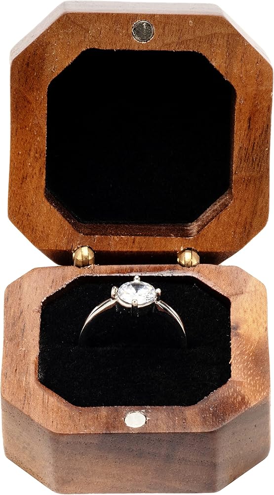 • سهل الفتح: مغلق بشكل آمن بغطاء مغناطيسي، لن يضيع الخاتم عند هز صندوق المجوهرات بعد إغلاقه. صندوق حلقي خشبي أنيق عتيق، غطائه مصمم بشكل فريد.