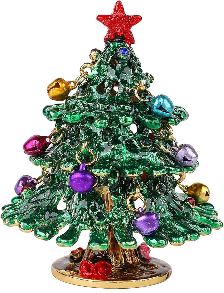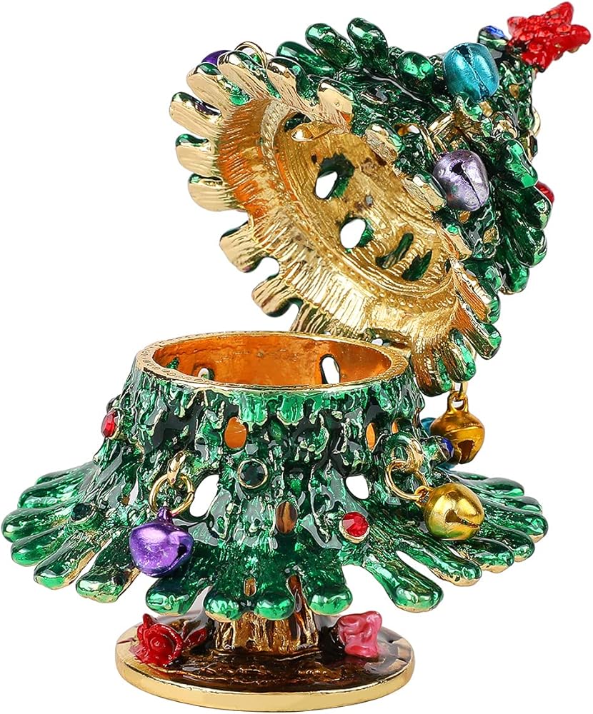 - المواد: صندوق حلية شجرة عيد الميلاد مصنوع من سبائك الزنك والمينا الملونة وأحجار الراين عالية الجودة. إنه جيد للديكور والجمع.